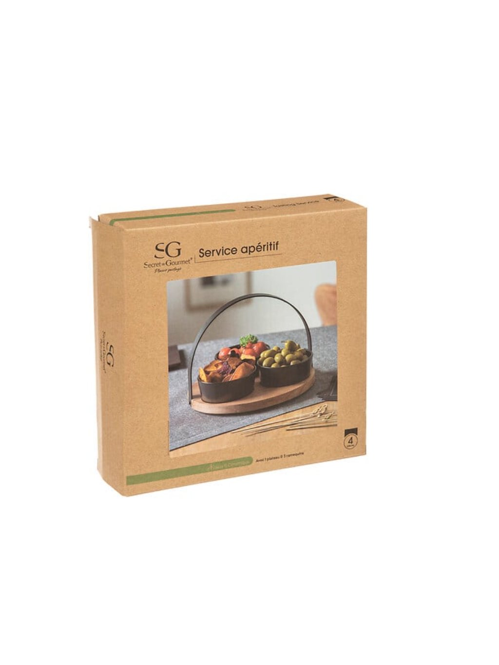 Povýšte svoje pohostenie na novú úroveň s touto dizajnovou súpravou z kolekcie Wild Forest. Kombinácia surovej čiernej kameniny a teplého akáciového dreva vytvára dokonalý kontrast, ktorý zapadne do moderného aj rustikálneho interiéru.