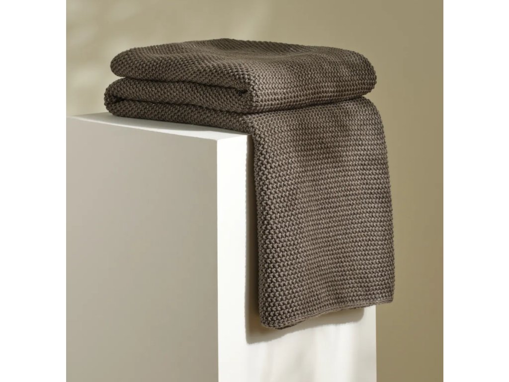 Mäkká deka z akrylu vo farbe ecru, ozdobená subtílnym vyhotovením lesklej nite. Zabezpečuje komfort a elegantný vzhľad. Je ideálna do útulného interiéru.