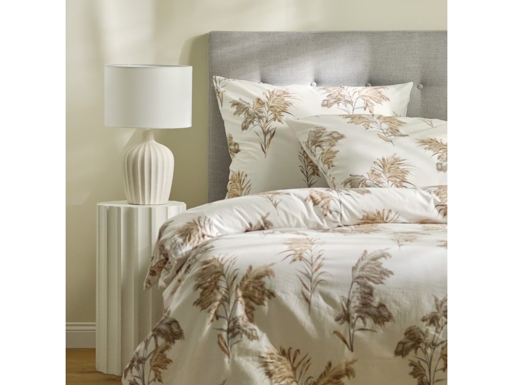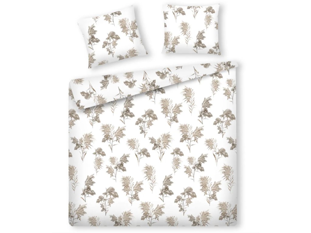 Bavlnená bielizeň Parallo očarí svetlou, bielou farbou a decentným motívom béžových a hnedých listov a vetvičiek. Univerzálny, rastlinný vzor vnáša do spálne pokoj a prírodný akcent, dokonale sa hodiaci do interiérov udržiavaných v minimalistickom aj modernom štýle. Elegantné vyhotovenie podčiarkuje estetiku, vďaka čomu je súprava ideálnym tipom na darček pre blízkych.