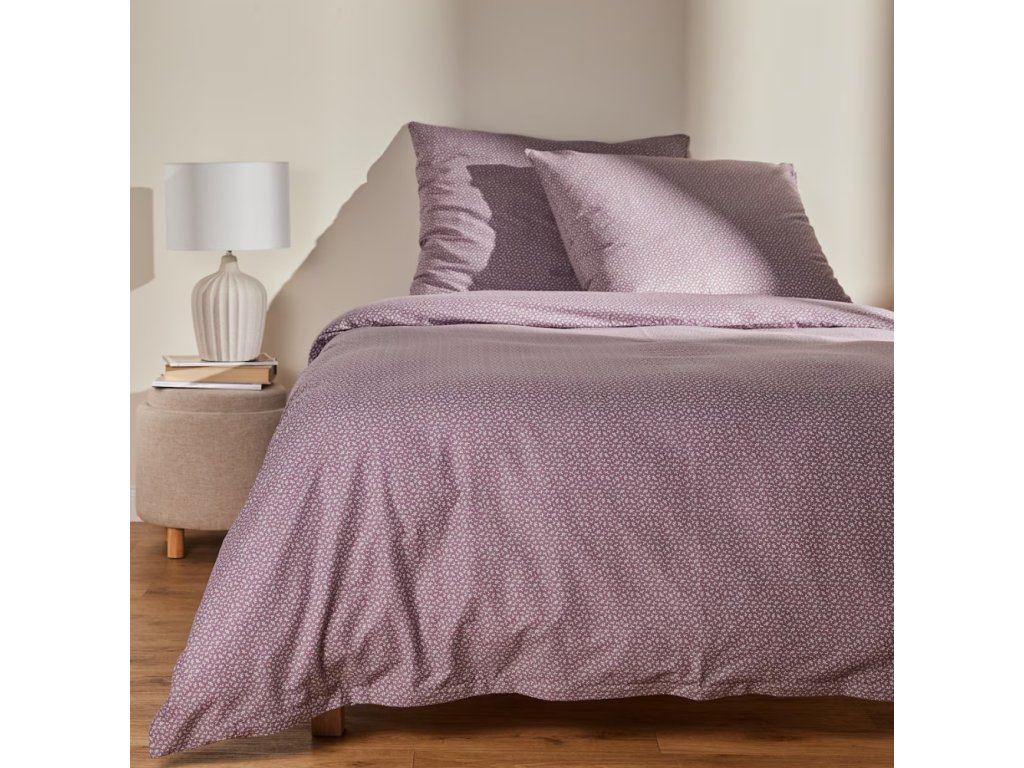 Vyrobená z vysokokvalitnej bavlny, vyznačuje sa výnimočnou mäkkosťou a priedušnosťou, čo zaisťuje komfortný spánok a optimálne podmienky na odpočinok. Gramáž 104 g/m² zabezpečuje vhodnú hrúbku materiálu, ktorý je zároveň ľahký a trvácny, ideálny na každodenné používanie. Fialová farba vnáša do spálne subtílny a elegantný akcent, ktorý dodáva interiéru hĺbku a rafinovanosť. Tento odtieň sa dokonale hodí k rôznym dekoratívnym štýlom, od klasických po moderné, prinášajúc do miestnosti príjemnú a relaxačnú atmosféru.