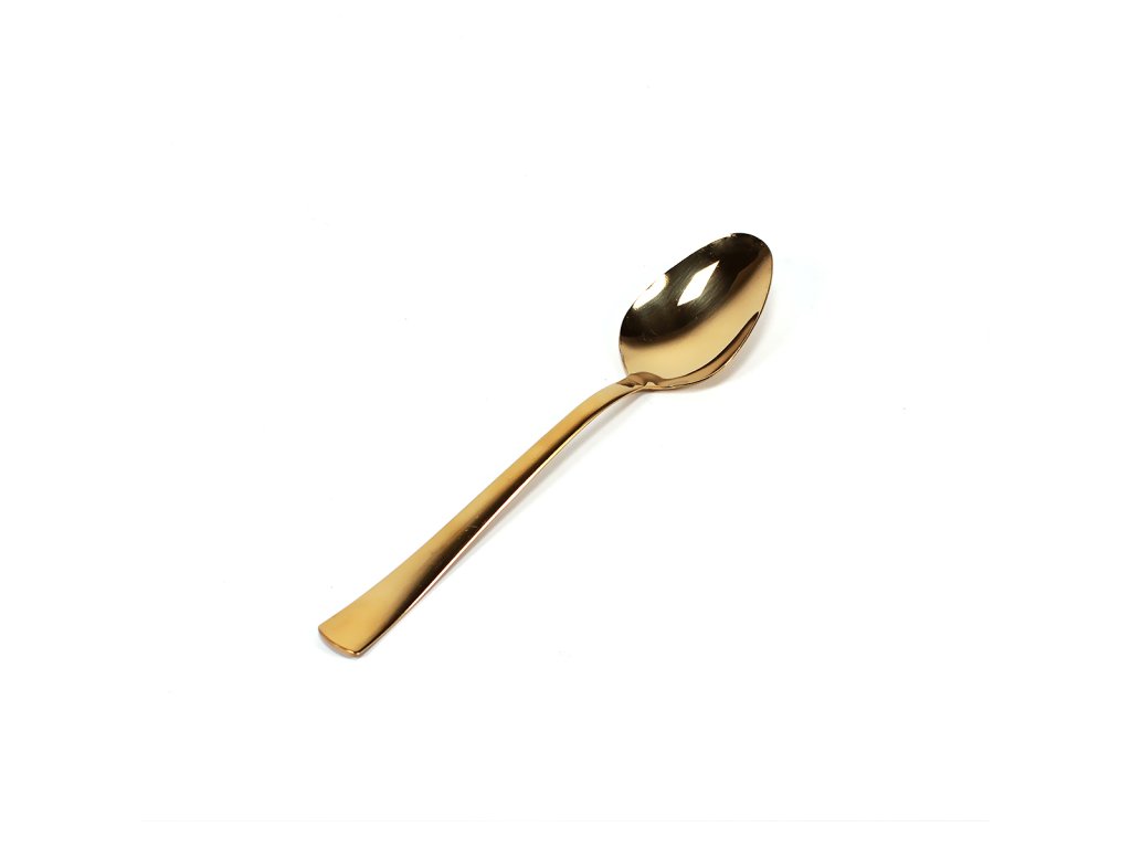 S rozmermi 16 x 3,2 cm je ideálna na miešanie nápojov, konzumáciu dezertov, jogurtov či pudingov. Vyrobená z kvalitného kovu v oslnivej zlatej farbe, ktorá dodá vášmu stolovaniu punc luxusu a slávnostnej atmosféry. Jej elegantný a moderný dizajn zabezpečuje pohodlné a štýlové používanie. Táto lyžička je nielen praktickým príborom, ale aj nádherným doplnkom, ktorý zaujme na každom stole a podčiarkne výnimočnosť okamihu. Ideálne sa hodí k ostatným zlatým príborom.