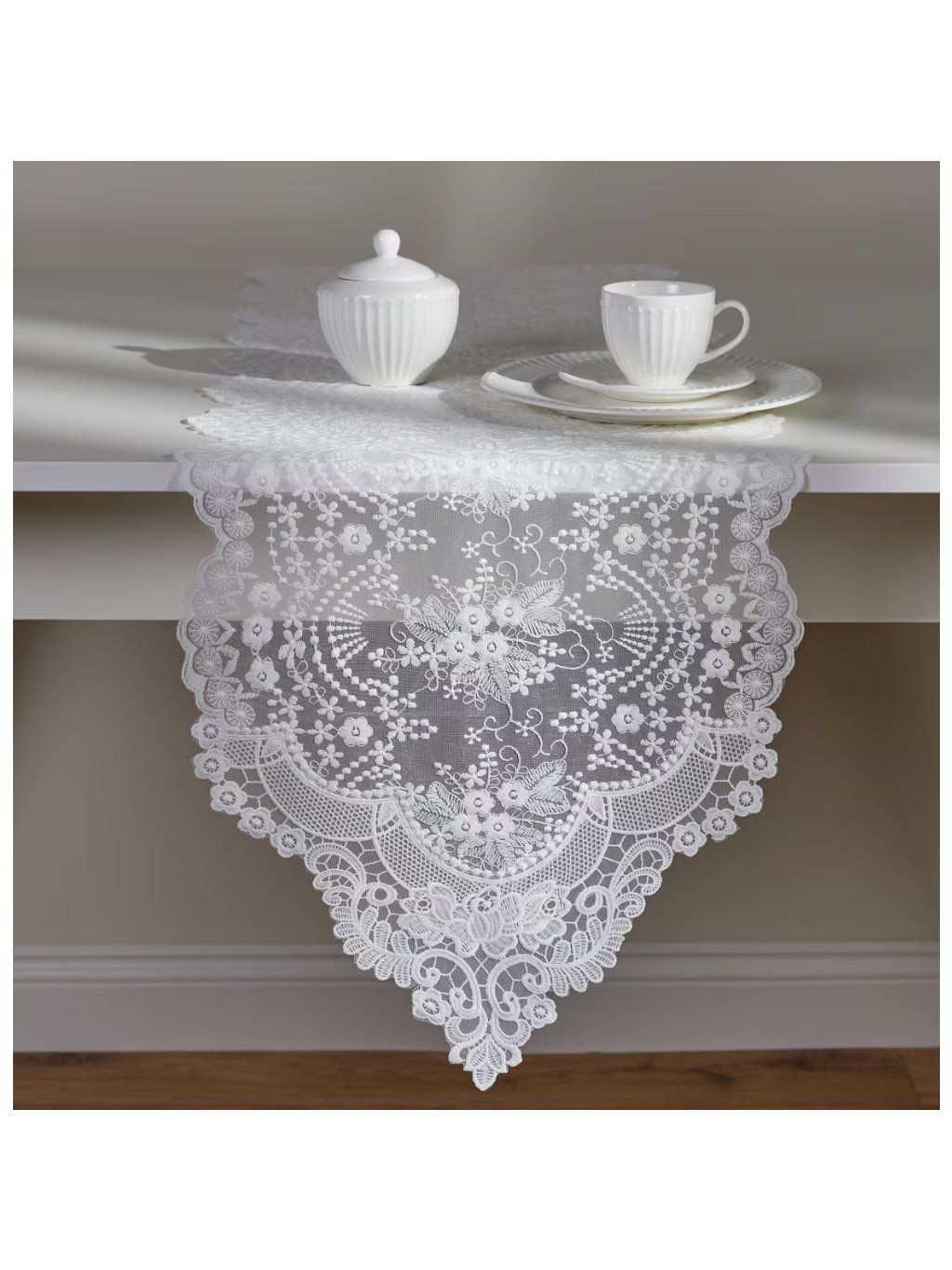 Čipkovaný behúň Lirio je vyrobený z vysokokvalitného polyesteru s vyšívanou úpravou. Tento materiál vyniká svojou trvácnosťou a odolnosťou voči každodennému používaniu či strate tvaru. Polyester je nielen príjemný na dotyk, ale aj jednoduchý na údržbu – zachováva si estetický vzhľad aj po opakovanom praní. Je to vynikajúca voľba pre tých, ktorí hľadajú praktický a zároveň štýlový bytový textil.