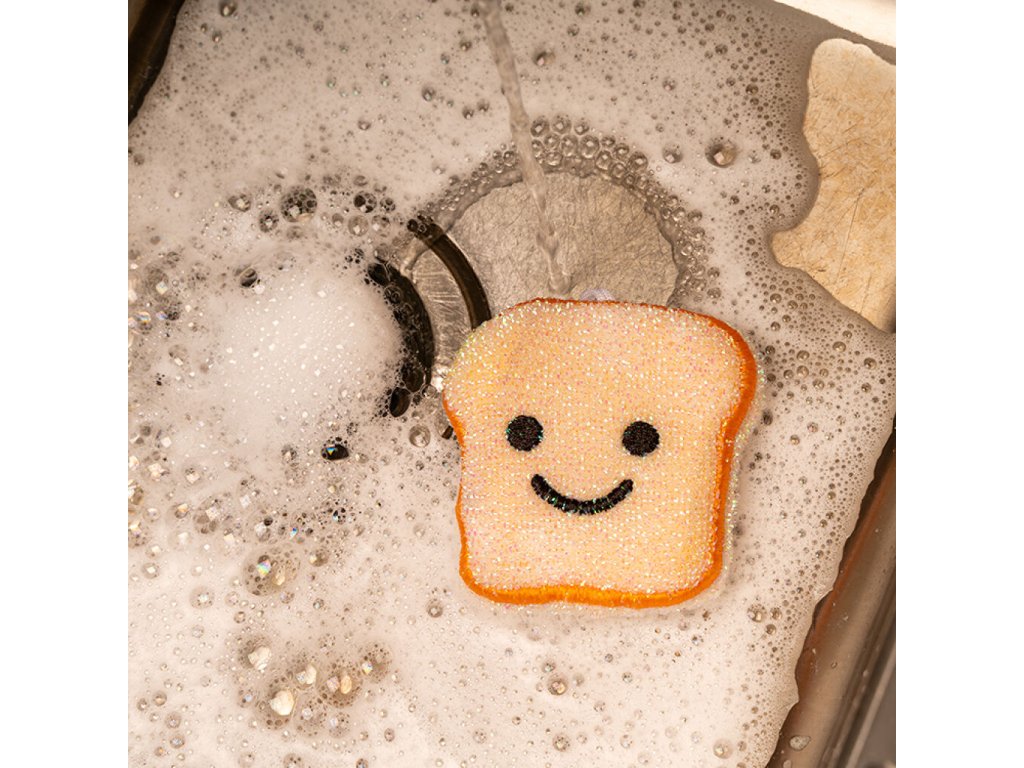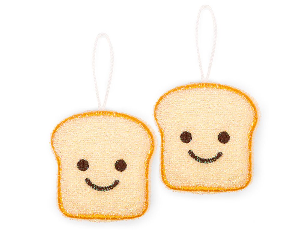 Rozjasnite si kuchyňu s týmito usmievavými hubkami na riad v tvare hrianky, ktoré sú ideálne na čistenie riadu a povrchov. Súprava obsahuje dve kusy.