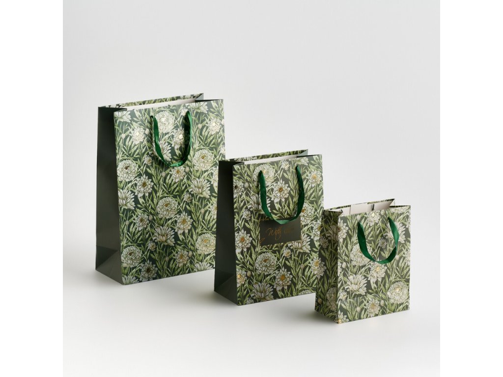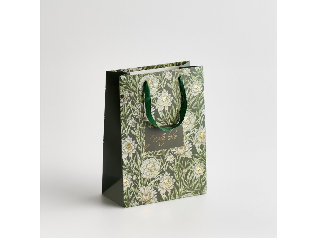 Papierová darčeková taška v zelenej farbe, s rozmermi 24 x 33 cm. Ideálna na balenie stredne veľkých darčekov na každú príležitosť.