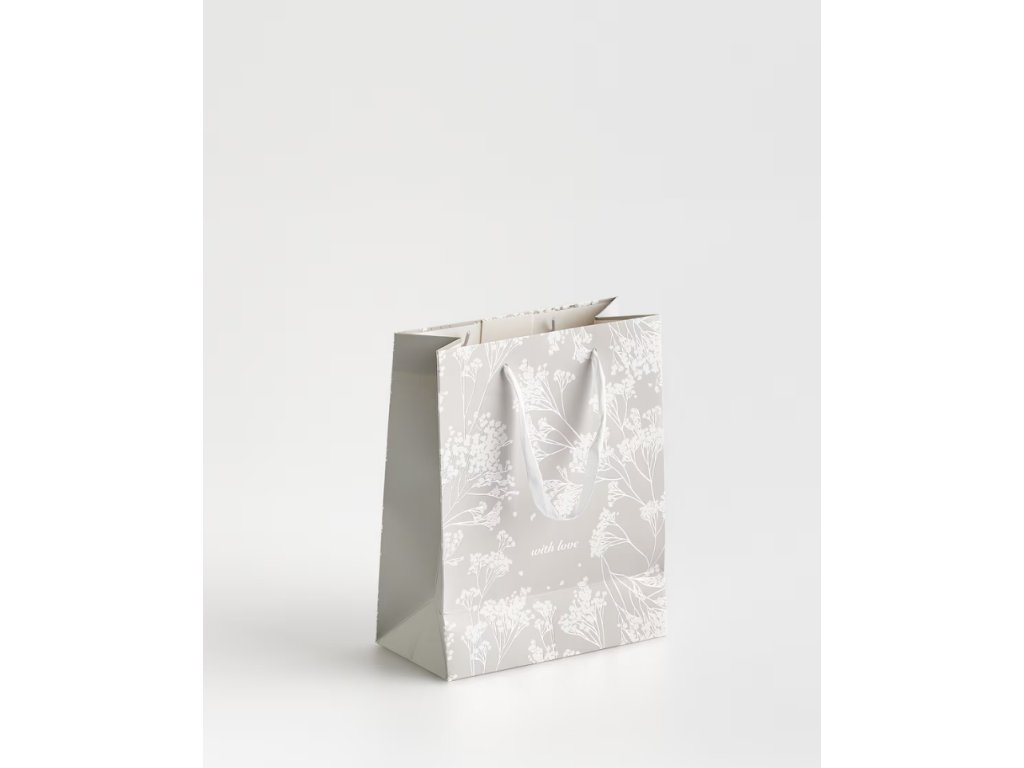 Elegantná a univerzálna darčeková taška je vyrobená z papiera v štýlovej svetlosivej farbe. Je ideálna na estetické balenie darčekov na akúkoľvek príležitosť, od sviatkov a narodenín až po firemné stretnutia. Kompaktná veľkosť 20 cm x 25 cm sa dokonale hodí na balenie malých darčekov, kozmetiky, kníh alebo iných doplnkov.
