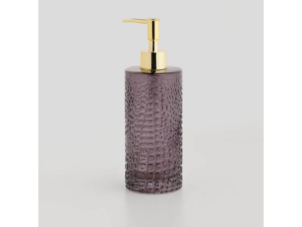 Dávkovač Caballo očarí svojím nekonvenčným dizajnom. Fialový odtieň skla s vylisovanou textúrou pripomínajúcou krokodíliu kožu mu prepožičiava luxusný charakter. Zlatá pumpička tvorí elegantný kontrast k fialovému sklu, čím vytvára harmonický celok. Dávkovač sa ideálne hodí do moderných, glamour, a tiež klasických interiérov. Bude tiež vynikajúcim nápadom na darček pre blízku osobu.