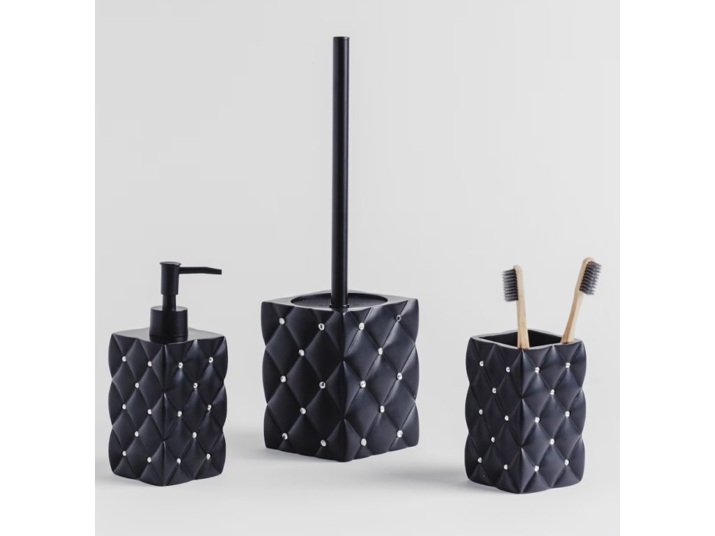 Dávkovač Grovos zaujme minimalistickým, no elegantným dizajnom. Čierna farba a jemné, prešívané vzory mu dodávajú jedinečný charakter. Decentné strieborné akcenty v podobe pumpičky a drobných krištáľov mu dodávajú lesk a šmrnc. Dávkovač sa dokonale hodí do moderných, ako aj klasických interiérov, ktorým dodá nádych sofistikovanosti. Je to tiež skvelý tip na darček pre blízku osobu.