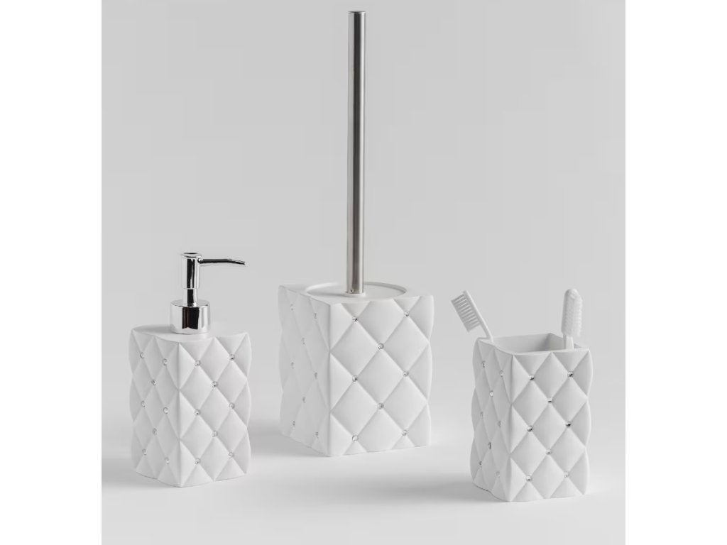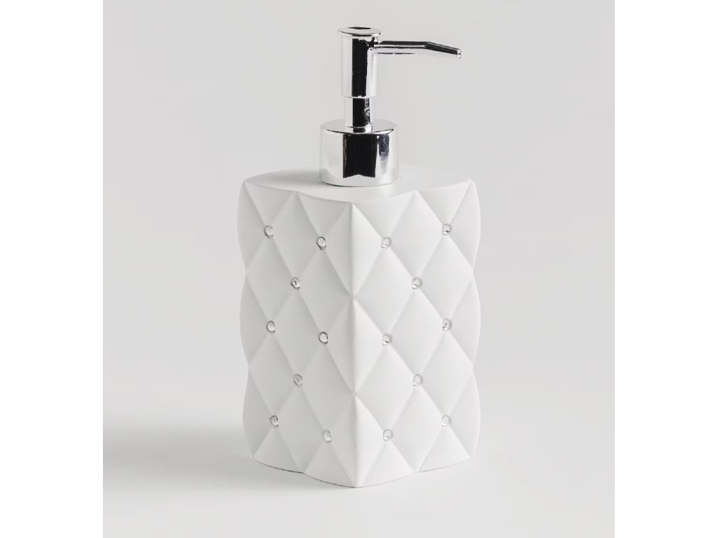 Dávkovač Grovos zaujme minimalistickým, no elegantným dizajnom. Biela farba a jemné, prešívané vzory mu dodávajú jedinečný charakter. Decentné strieborné akcenty v podobe pumpičky a drobných krištáľov mu dodávajú lesk a šmrnc. Dávkovač sa dokonale hodí do moderných, ako aj klasických interiérov, ktorým dodá nádych sofistikovanosti. Je to tiež skvelý tip na darček pre blízku osobu.