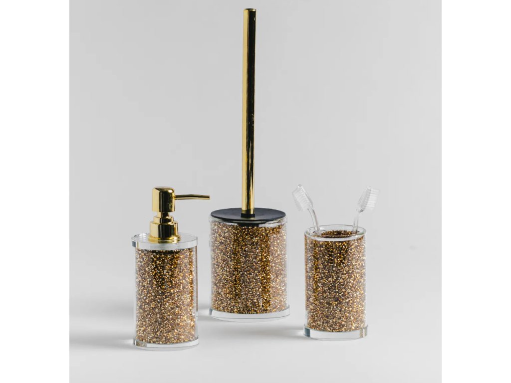 Kúpeľňový dávkovač Shinoso je elegantný a funkčný doplnok do každej kúpeľne. Jeho zlatý odtieň dodáva luxusnú povrchovú úpravu, ktorá okamžite upúta pozornosť. Materiál, z ktorého je vyrobený, je sklo, ktoré mu dodáva pevnú štruktúru a trvácnosť. Nielenže dokonale ladí s ostatnými prvkami kúpeľne, ale je aj praktickým nástrojom na každodenné použitie. Vďaka dokonale navrhnutej pumpičke dávkovač umožňuje jednoduché a presné dávkovanie tekutín, vďaka čomu je jeho používanie pohodlné a komfortné. Vďaka vysokokvalitným materiálom a precíznej výrobe je dávkovač Shinoso nielen estetickým prvkom vybavenia kúpeľne, ale aj trvácnym a funkčným nástrojom, ktorý vydrží dlhé roky.