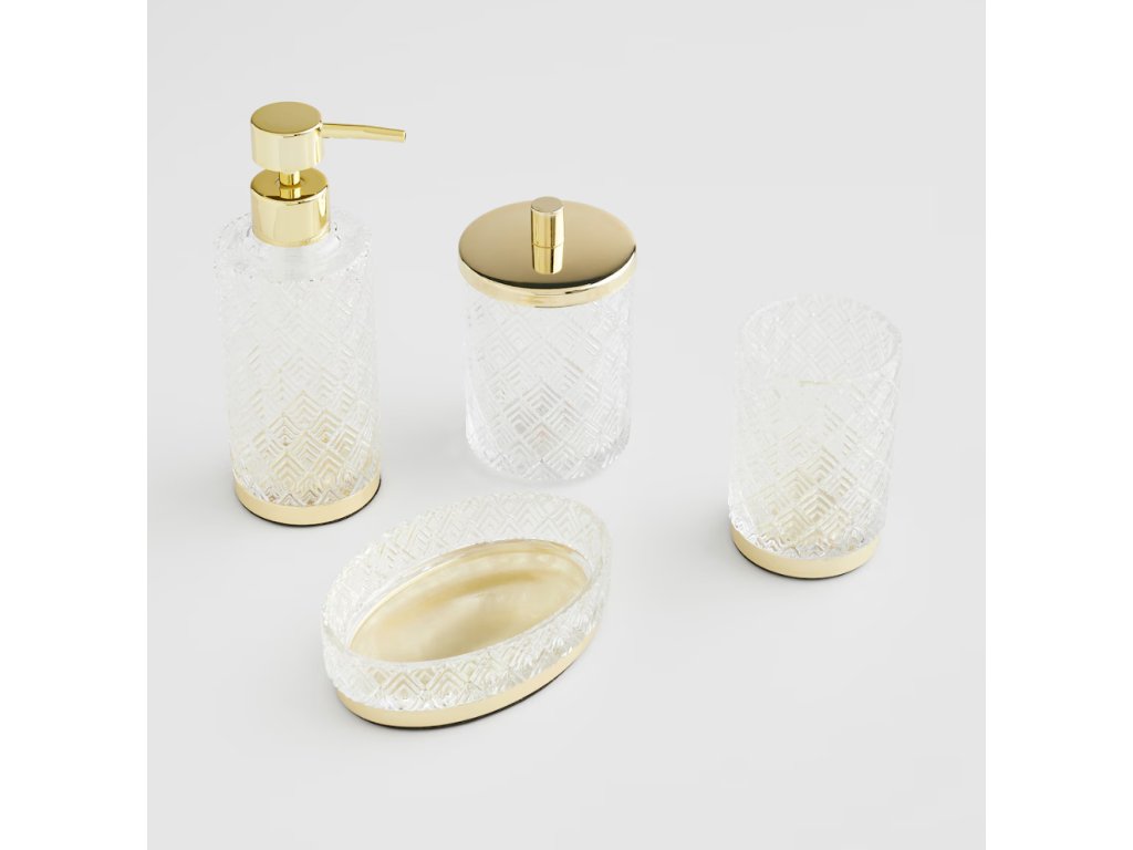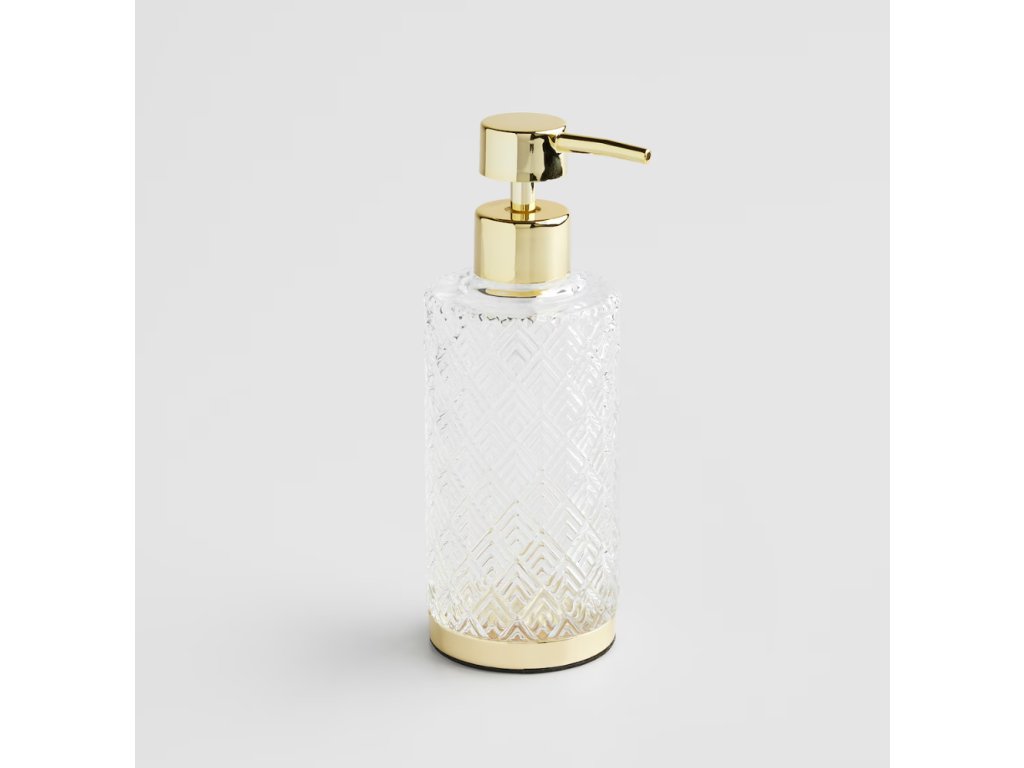 Dávkovač Ventoso zaujme svojím minimalistickým, no zároveň elegantným dizajnom. Svetlo zlatá farba detailov sa krásne spája s transparentným sklom a vytvára harmonický celok. Geometrický vzor mu dodáva moderný charakter. Dávkovač sa perfektne hodí do moderných, glamour a tiež klasických interiérov. Je to tiež skvelý nápad na darček pre blízku osobu.