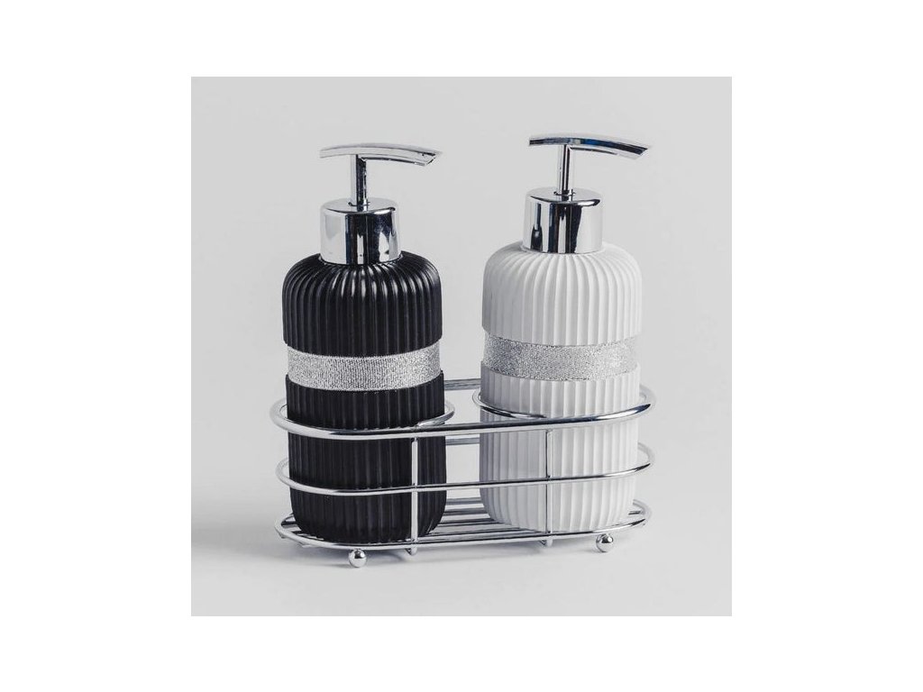 Bielo čierne dávkovače vyrobené z kvalitnej keramiky. Majú striebornú plastovú pumpičku. Jeho veľkou výhodou je možnosť použitia pre rôzne tekutiny podľa vášho výberu: tekuté mydlo, tekuté dezinfekčné prostriedky, pleťovú čistiacu vodu, pleťový čistiaci olej, umývacie prostriedky na riad. Štýlový doplnok ideálny do kúpeľne aj do kuchyne. Umožní šetriť čistiacu tekutinu a zároveň obmedzí šírenie baktérií. Jednoduché plnenie odskrutkovaním vrchnej časti dávkovača.