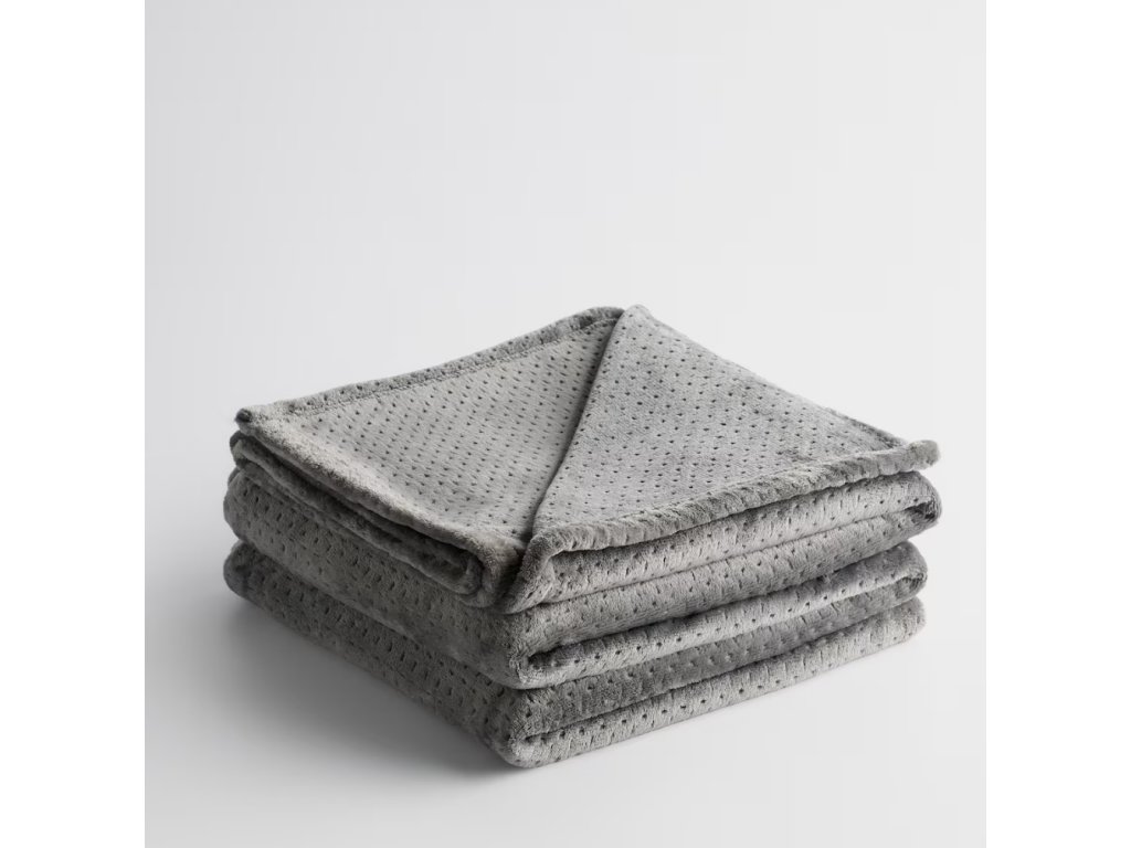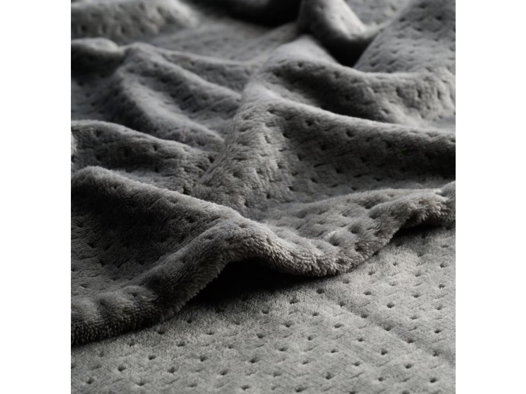 Sivá farba prikrývky a decentný, razený (reliéfny) vzor v drobné bodky jej dodávajú eleganciu a univerzálnosť. Prikrývka dokonale zapadá do moderných, minimalistických a škandinávskych aranžmánov. Obojstranné vyhotovenie a jemné prešívanie na okrajoch podčiarkujú dôraz na detaily. Prikrývka sa osvedčí na posteli, gauči, ako prehoz alebo praktický darček – na každú príležitosť.
