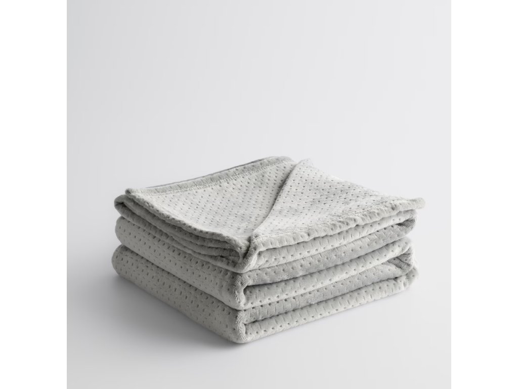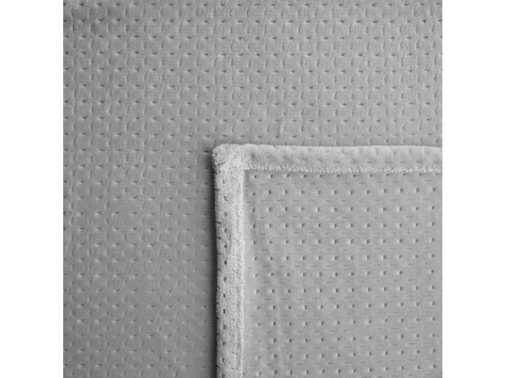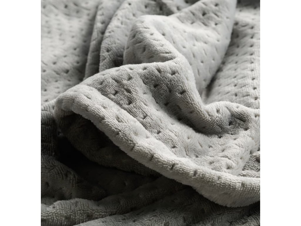Svetlosivá farba v spojení s obojstranným, razeným (reliéfnym) vzorom v decentné bodky/výstupky dodáva prikrývke elegantný a nadčasový vzhľad. Hladká lemovka podčiarkuje estetické vyhotovenie. Táto univerzálna prikrývka skvele doplní moderné, škandinávske alebo minimalistické aranžmány. Môžete ju položiť na posteľ v spálni, gauč v obývačke alebo použiť ako útulný prehoz na terase. Predstavuje tiež vynikajúci nápad na praktický darček.