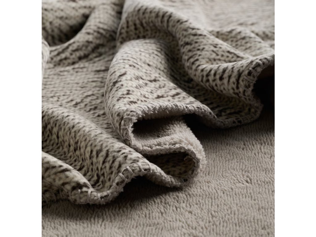 Svetlosivý odtieň s nepravidelným, viacfarebným vzorom dodáva deke univerzálny a súčasný charakter. Vyhotovenie zhodné na prednej a zadnej strane, starostlivé ozdobné švy a štruktúra inšpirovaná zvieracím motívom sa dokonale hodia do minimalistických, škandinávskych a moderných klasických trendov. Deka sa osvedčí v spálni, obývačke, detskej izbe, ako prehoz alebo darček pre blízku osobu.