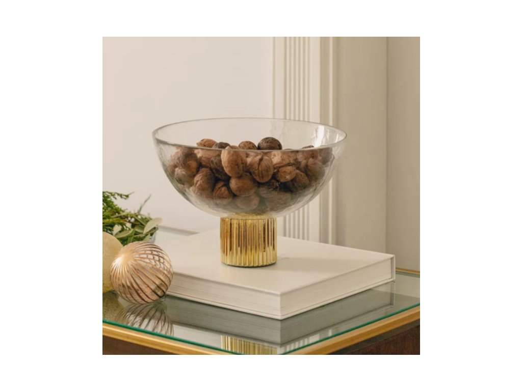 Zlatá sklenená dekoračná misa. Skvelo ozdobí váš jedálenský stôl alebo doplní váš interiér. Nájde si svoje miesto a uplatnenie v každej izbe a pekne vkusne ju premení.