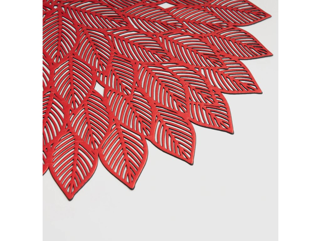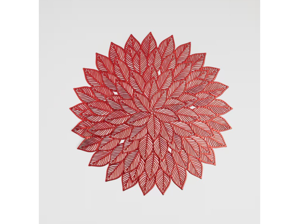 Sviatočná farba na Váš stôl! Dekoračná podložka Asaros (Ø 38 cm) v žiarivej červenej farbe, s prepracovaným rastlinným motívom. Ideálna na vianočné a sviatočné stolovanie, dodá Vášmu interiéru energický a teplý tón. Vyrobená z PVC, je praktická a ľahko sa udržuje v čistote