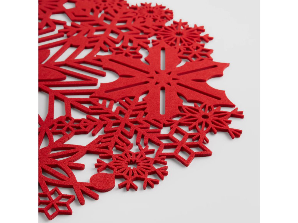 Okrúhla podložka v intenzívnej červenej farbe je kvintesenciou sviatočnej dekorácie. Laserom vyrezávané snehové vločky vytvárajú pôsobivý vzor, ktorý priťahuje zrak a dodáva pôvab každému stolu. Izarra sa ideálne hodí do interiérov zariadených v klasickom, modernom, ale aj škandinávskom štýle. Je to tiež vynikajúci nápad na vianočný darček pre blízku osobu.