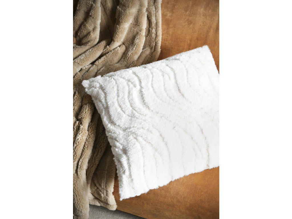Dekoračný vankúšik s jedinečným vlnitým vzorom je esenciou moderného pohodlia a textúry. Je vyrobený z extra mäkkého, snehobieleho plyšu s plastickým, vrúbkovaným povrchom. Vankúšik vyniká svojou čistou farbou a zaujímavým 3D efektom, ktorý v kontraste s teplými hnedými tónmi okolia dodá priestoru sviežosť a hĺbku. Ideálny pre obývačky a spálne, ktoré hľadajú elegantný, ale útulný prvok.