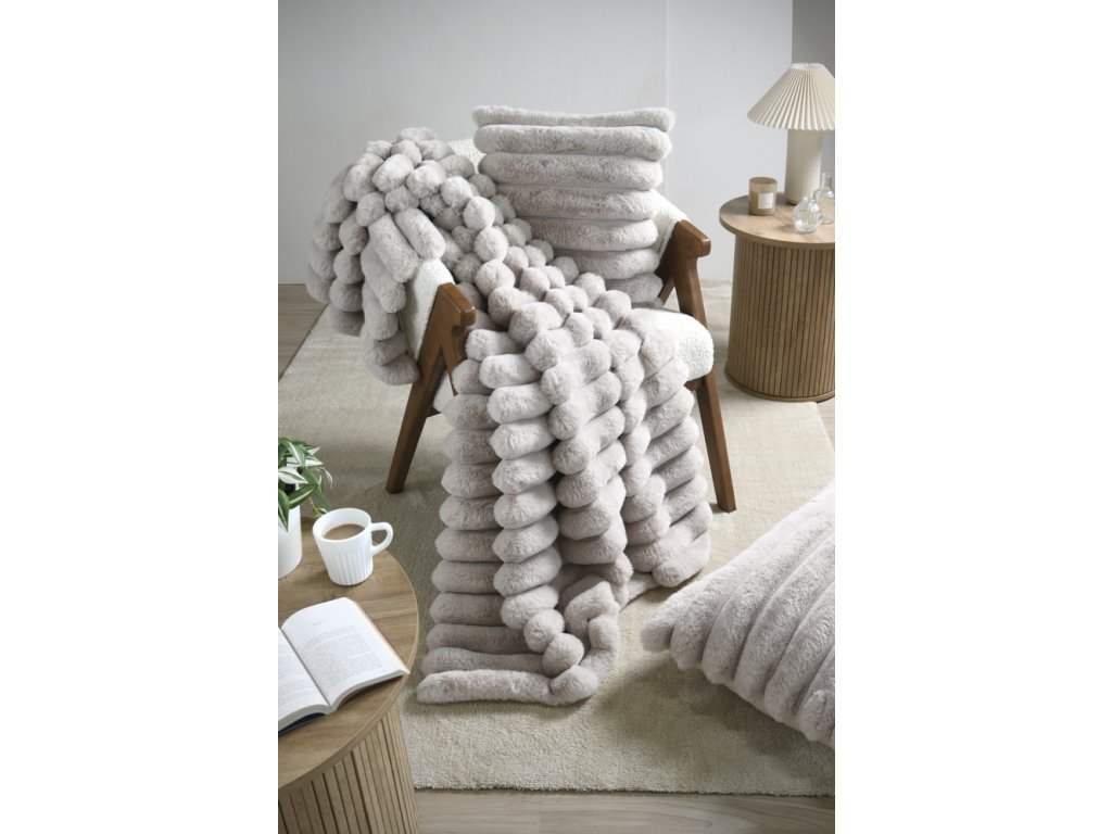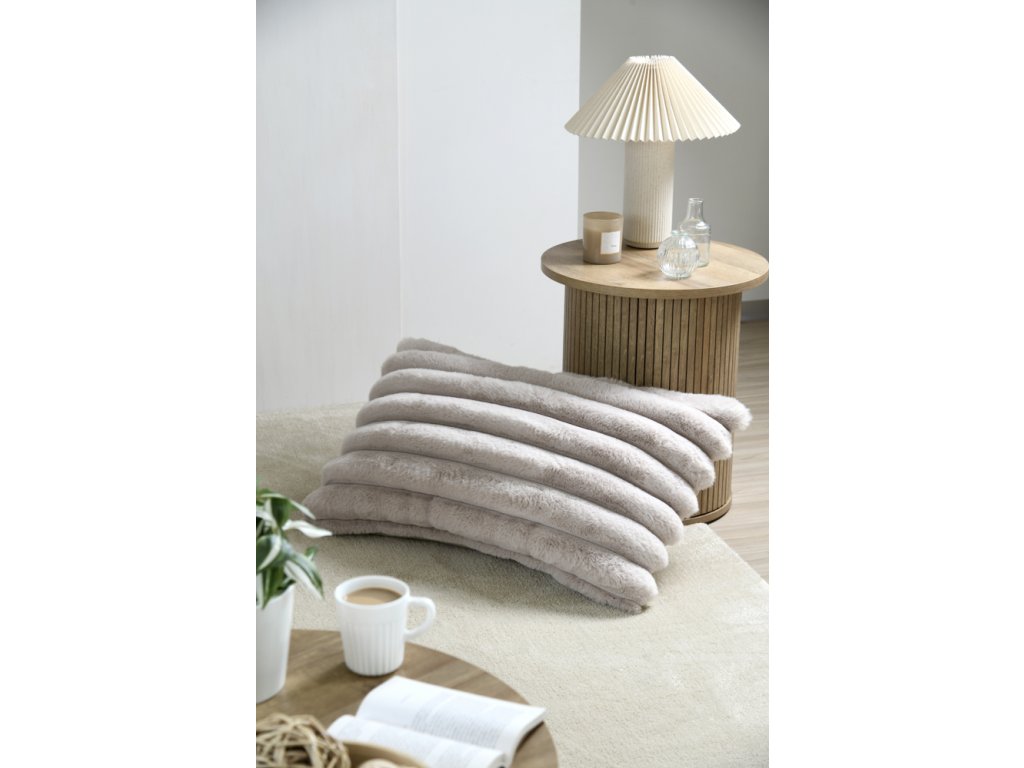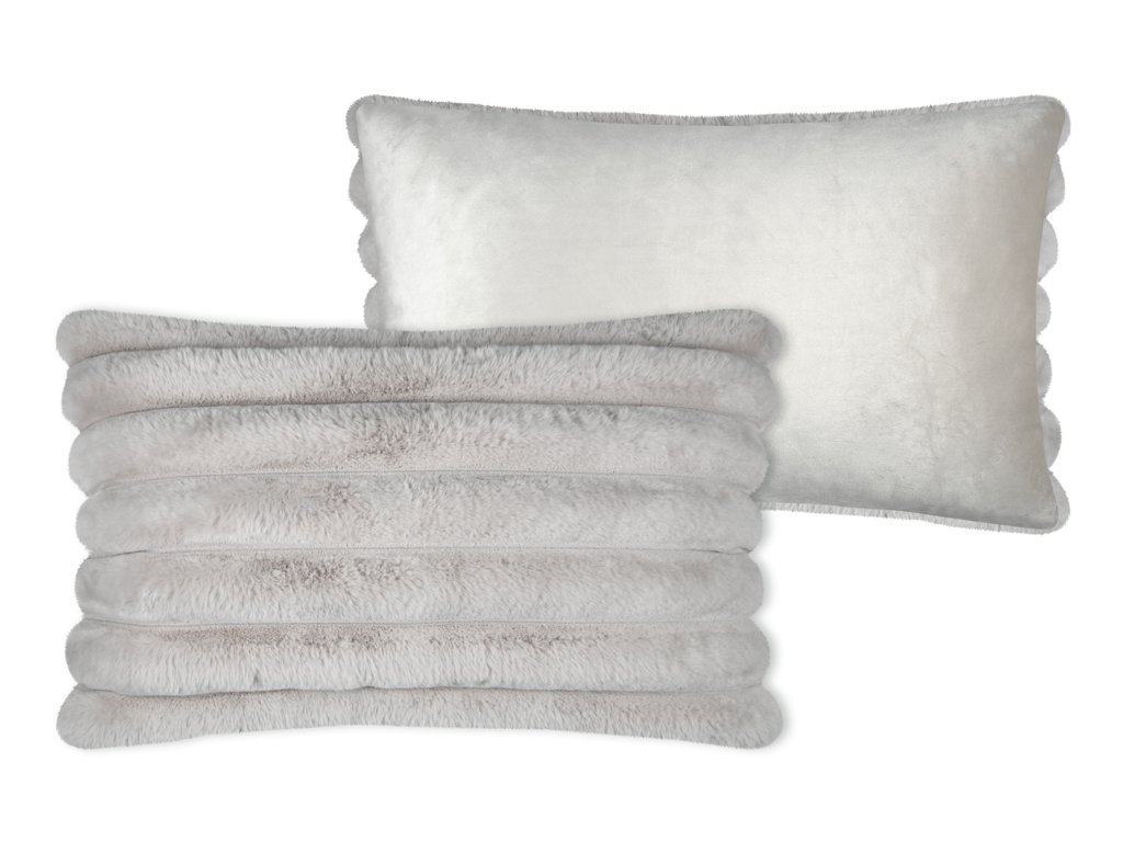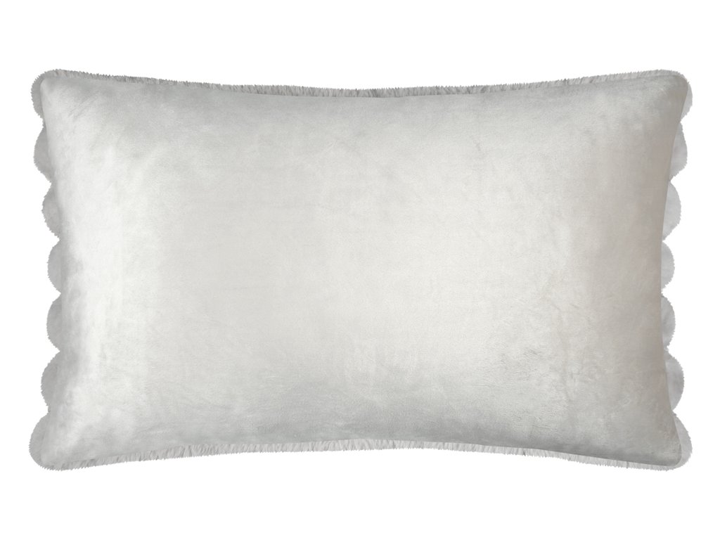 Dekoračný vankúšik v podlhovastom tvare dodá spálni alebo obývačke nádych sofistikovanej elegancie. Je vyrobený z extra jemného, zamatového plyšu s miernym leskom, v čistom odtieni slonovinovej kosti. Vankúšik sa odlišuje decentným mušľovitým alebo vlnitým okrajom na kratších stranách, ktorý mu dodáva romantický, no pritom moderný vzhľad. Jeho hladký povrch a čistý dizajn sú ideálne na kombinovanie s výraznejšími textúrami a farbami.