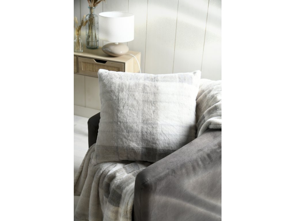 Dodajte svojmu interiéru dotyk jemnosti a elegancie s týmto obojstranným dekoračným vankúšom. Jedna strana, zdobená jemným kockovaným vzorom v šedých a bielych tónoch, prinesie do vašej obývačky alebo spálne útulnú atmosféru. Druhá strana je jednofarebná, čo vám umožní ľahko prispôsobiť vzhľad vankúša momentálnej nálade alebo dekorácii.