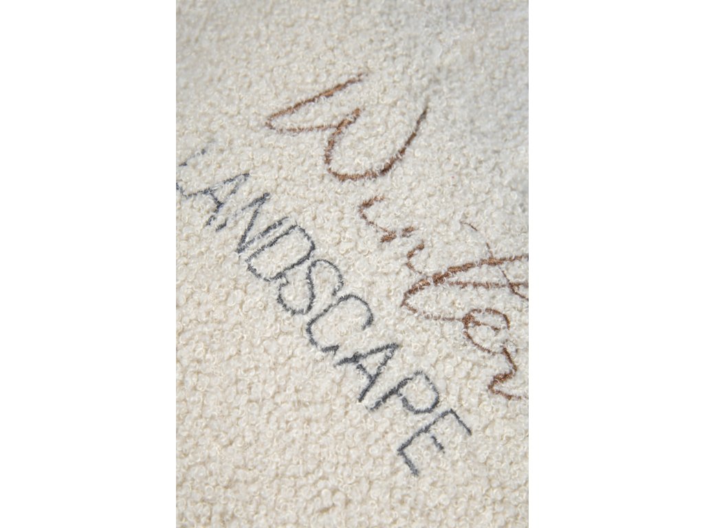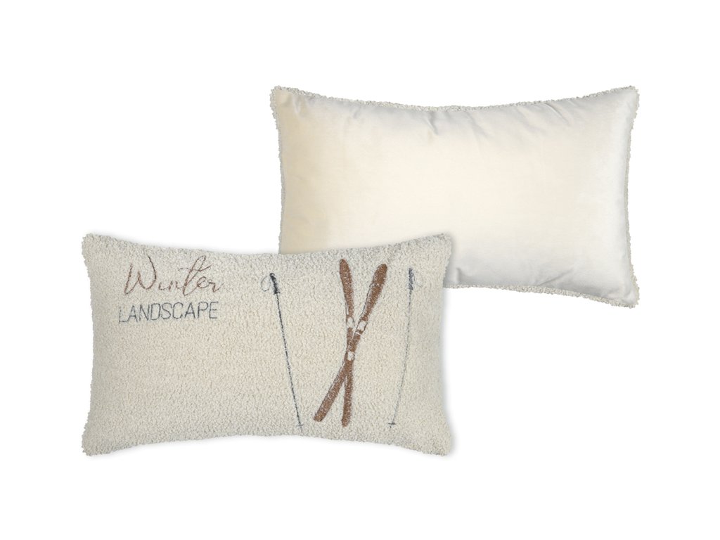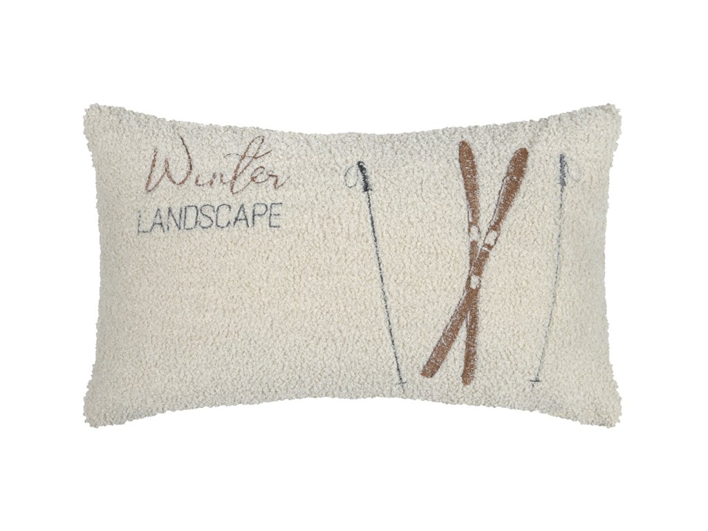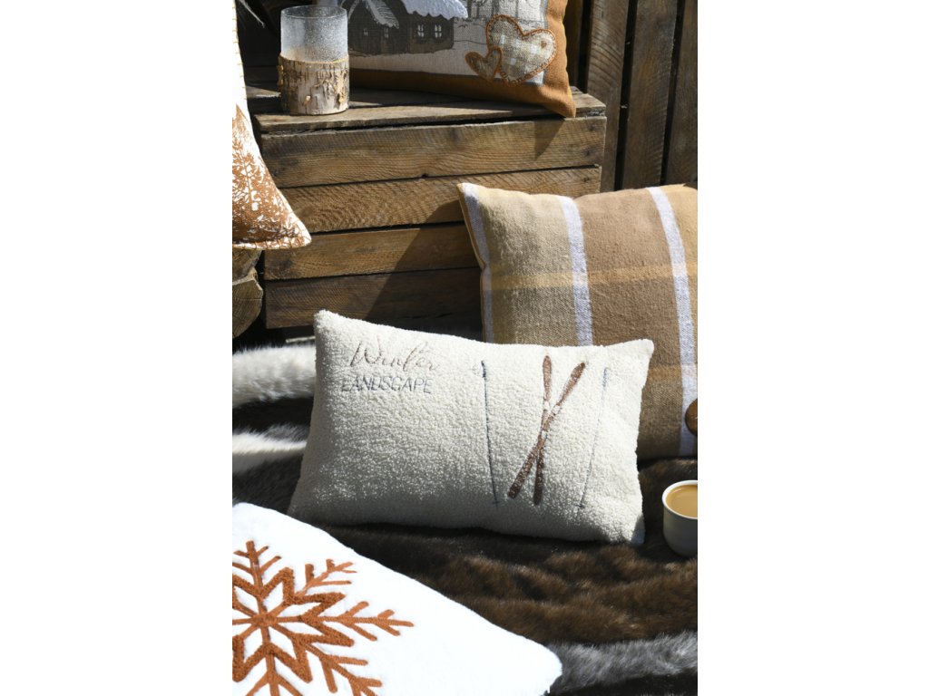 Vytvorte si vo svojom domove zimnú atmosféru s týmto dekoračným vankúšom, ktorý na prvý pohľad evokuje pohodlie po lyžovačke. Vankúš v jemnej krémovej farbe má štruktúrovaný povrch, ktorý imituje baránka, a nápis „Winter LANDSCAPE“, dopĺňa ho obrázok lyží a palíc.