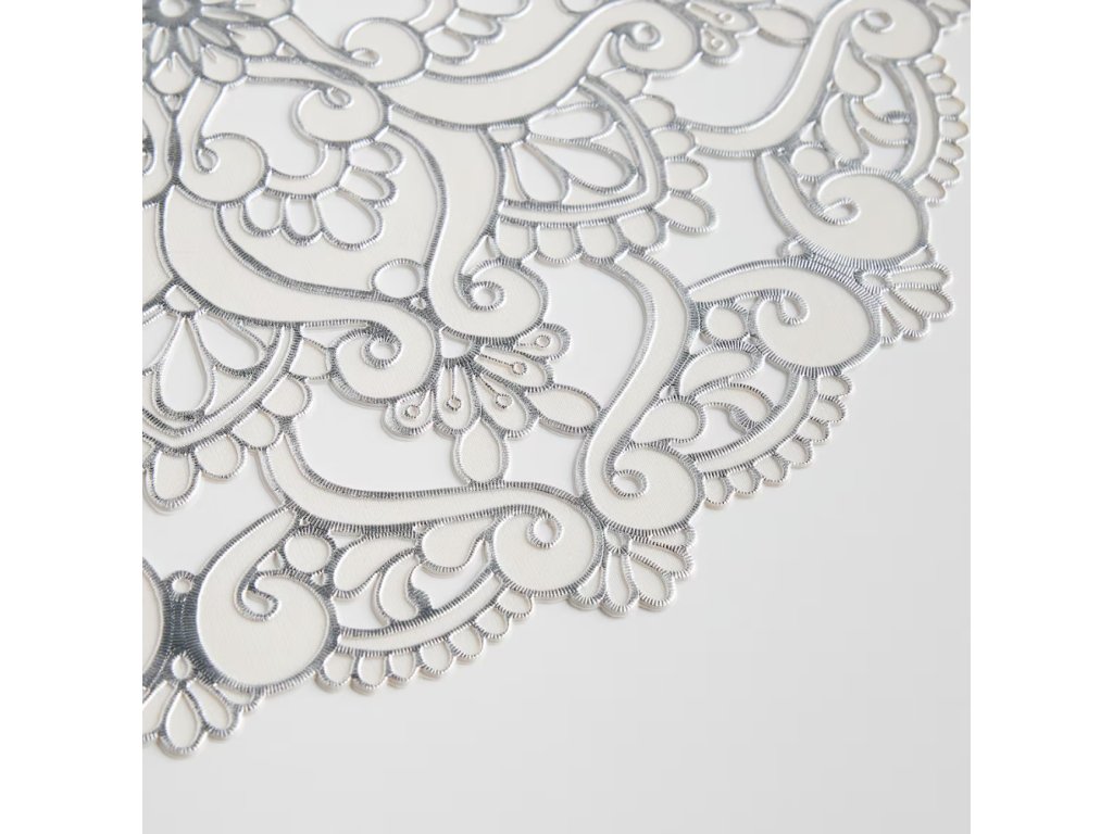 Dekoratívna podložka na stôl, vyrobená z odolného PVC materiálu v elegantnej striebornej farbe, je štýlovým akcentom, ktorý zvýrazní charakter každého stolovania. Jej okrúhly tvar sa ideálne hodí ako podklad pod tanier, misku alebo ako dekoračný prvok, pričom chráni dosku stola pred poškriabaním, vlhkosťou a vysokými teplotami. Strieborná farba s jemným leskom dodáva aranžmánu modernosť a decentnú eleganciu a dokonale ladí s klasickým aj moderným riadom. Podložka sa ľahko udržiava v čistote, stačí ju utrieť vlhkou handričkou. Skvele sa hodí na každodenné použitie aj na výnimočné príležitosti.