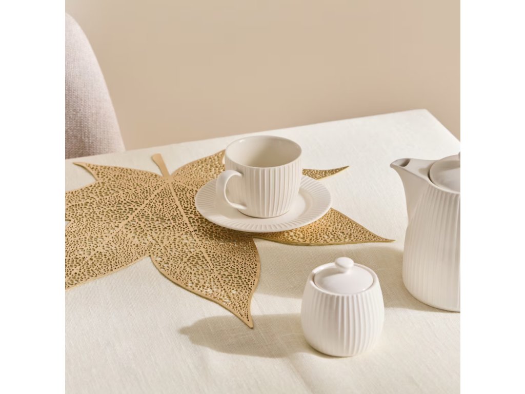 Dekoratívna podložka v tvare listu, vyrobená z odolného a ľahko udržiavateľného materiálu, sa vyznačuje jemným povlakom s výrazným žilkovaním. Nielenže chráni dosku stola pred poškriabaním a škvrnami, ale slúži aj ako štýlová podložka pod taniere alebo ako dekoračný podstavec pod riad. Je dokonalá na každodenné použitie, ako aj na výnimočné príležitosti.
