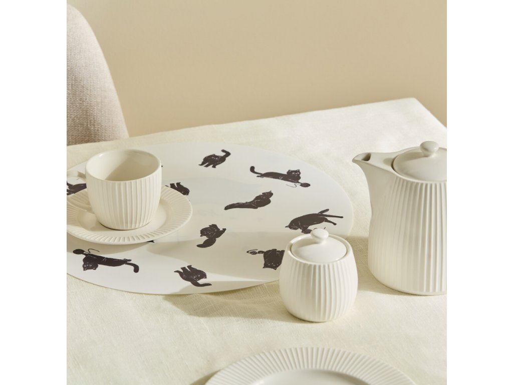 Dekoratívna podložka na stôl, vyrobená z odolného polypropylénu v svetlom odtieni s roztomilým motívom mačiek, je štýlovým a funkčným doplnkom vášho stola. Okrúhly tvar dokonale chráni povrch stola pred znečistením, poškriabaním a vysokými teplotami riadu. Svetlá farebná schéma v kombinácii s jemnými grafikami mačiek vnesie do interiéru útulnú a radostnú atmosféru, ideálnu pre milovníkov týchto zvierat. Podložka sa ľahko udržiava v čistote, stačí ju utrieť vlhkou handričkou. Je to praktická a estetická voľba na každodenné použitie, ale aj na výnimočné príležitosti.