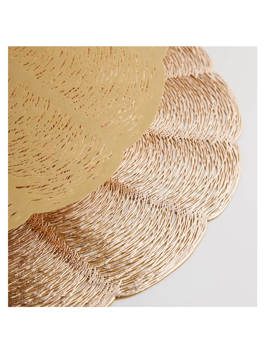 Dodajte svojmu stolu lesk s dekoratívnym prestieraním Petalo s priemerom 38 cm. Vyznačuje sa pozlátenou povrchovou úpravou a elegantným štýlom, ktorý je ideálny pre moderné aranžmány.