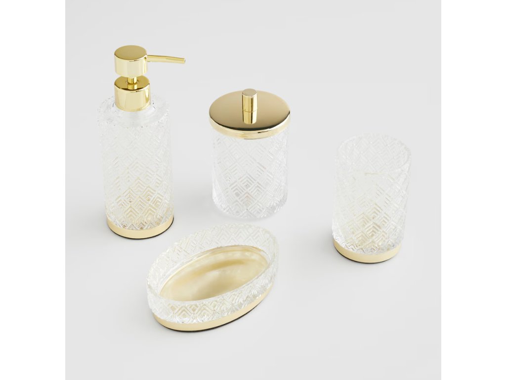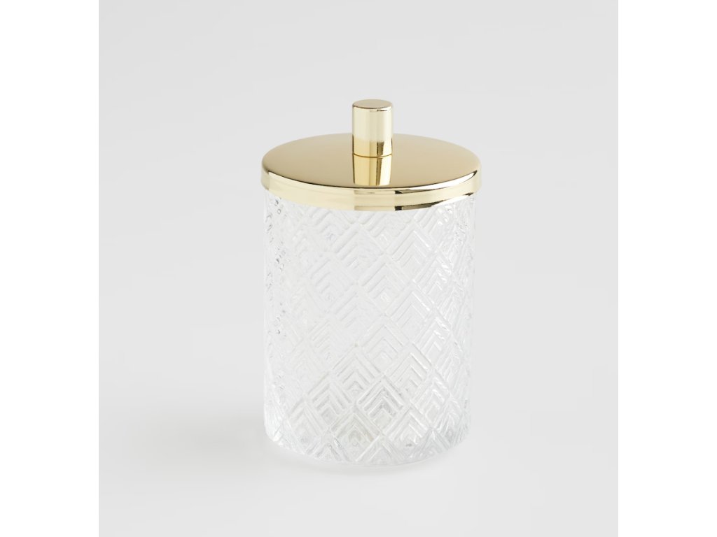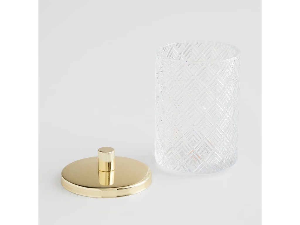 Nádoba Ventoso je vyrobená z vysokokvalitného skla, ktoré jej dodáva výnimočnú priehľadnosť a lesk. Vrchnák z kovu v svetlozlatom odtieni jej dodáva eleganciu a šmrnc. Sklo je hygienický materiál a ľahko sa udržiava v čistote, čo je v kúpeľni mimoriadne dôležité. Kovový vrchnák chráni obsah pred vlhkosťou a prachom, čím zaisťuje sviežosť a trvácnosť v nej uložených drobností.