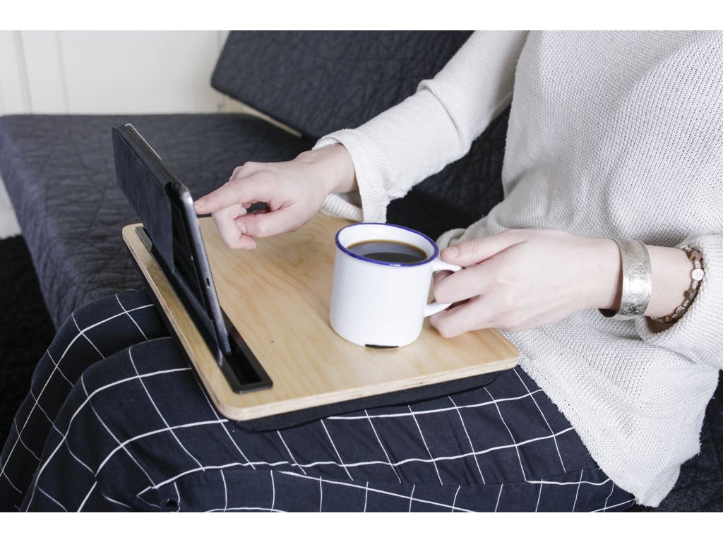 Používajte svoj tablet v posteli, v lietadle alebo počas jedla. Tento pevný protišmykový stolík má vankúš z mikro-guľôčok pre maximálne pohodlie.