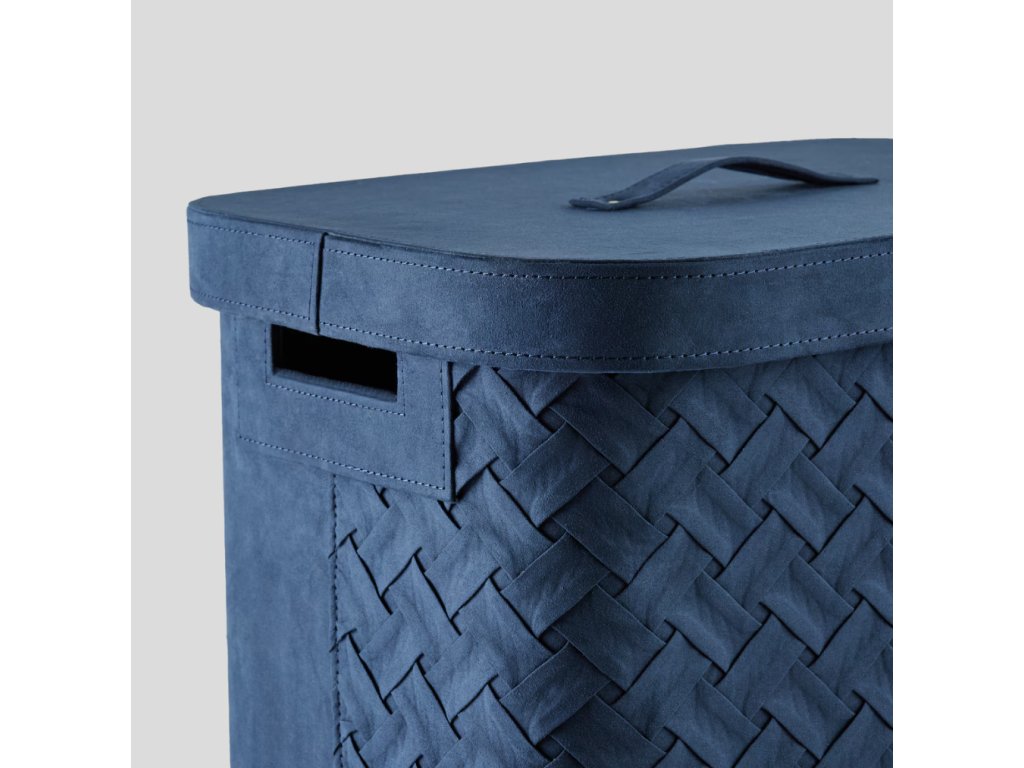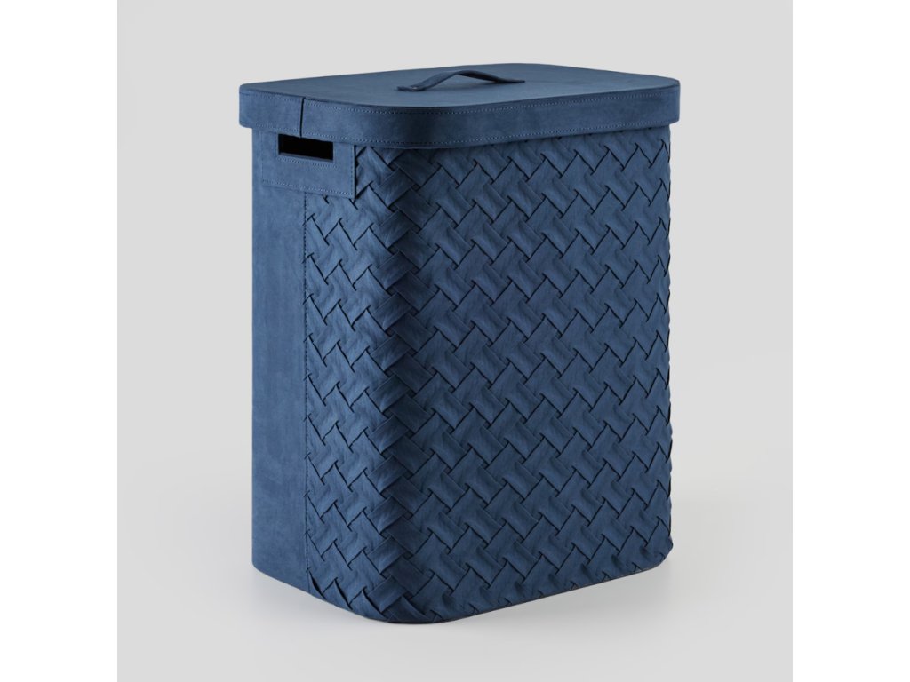 Štýlový kôš na bielizeň v elegantnej tmavomodrej farbe. Jeho rozmery zabezpečujú primeranú kapacitu, a pevná konštrukcia zaručuje trvácnosť. Kôš sa dokonale osvedčí v moderných interiéroch, dodávajúc im charakter a estetiku, a zároveň uľahčujúc organizáciu priestoru.