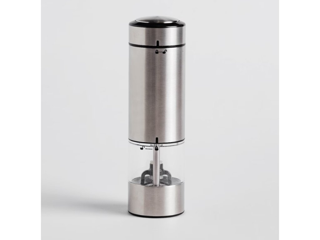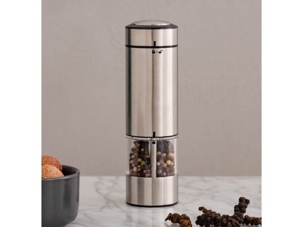 Moderný elektrický mlynček vyrobený z kombinácie nehrdzavejúcej ocele, keramiky a hliníka je štýlovým a funkčným kuchynským doplnkom. V elegantnej striebornej farbe ladí s akýmkoľvek zariadením kuchyne. Vybavený mlecím mechanizmom zabezpečuje presné a rovnomerné mletie. Elektrické ovládanie uľahčuje používanie – stačí jedno stlačenie a získate čerstvo namleté korenie. Ideálny na každodenné použitie, ako aj ako praktický prvok modernej kuchyne.