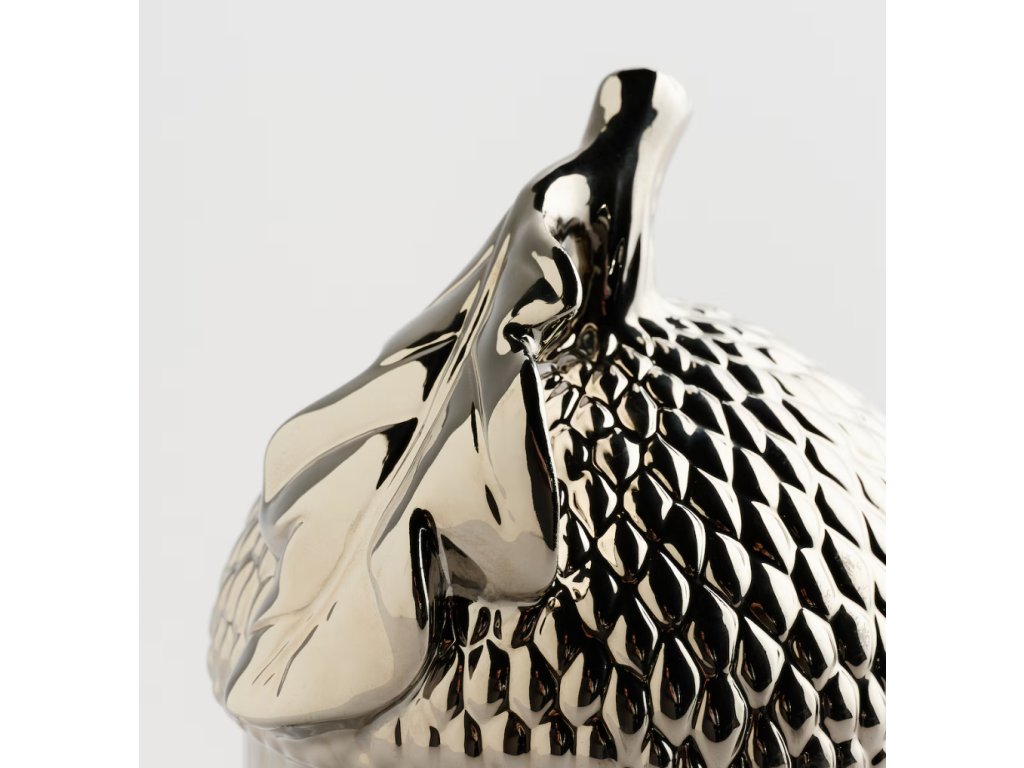 Elegantná dekoratívna figúrka vyrobená z keramiky v striebornej farbe s efektnou, galvanizovanou úpravou. Predstavuje decentný, no zároveň štýlový doplnok do každého interiéru. Spojenie keramického podkladu s metalickým leskom jej dodáva moderný charakter, ktorý dokonale podčiarkne usporiadanie obývačky, spálne či kancelárie. Figúrka je nielen estetická, ale aj odolná, vďaka čomu bude dlho tešiť oko.