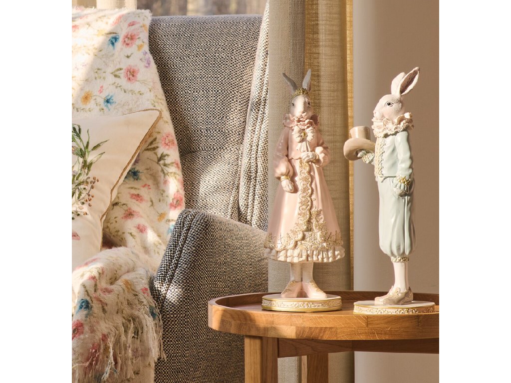 Jemná veľkonočná figúrka vyrobená zo živice v subtílnom svetloružovom odtieni. Jej elegantný a nadčasový dizajn dokonale podčiarkuje jarný charakter sviatkov. Je ideálna ako ozdoba na stôl, komodu či parapet, pričom do interiéru vnesie teplo a sviatočnú náladu. Kvalitné spracovanie zaručuje odolnosť a estetický vzhľad počas mnohých sezón.