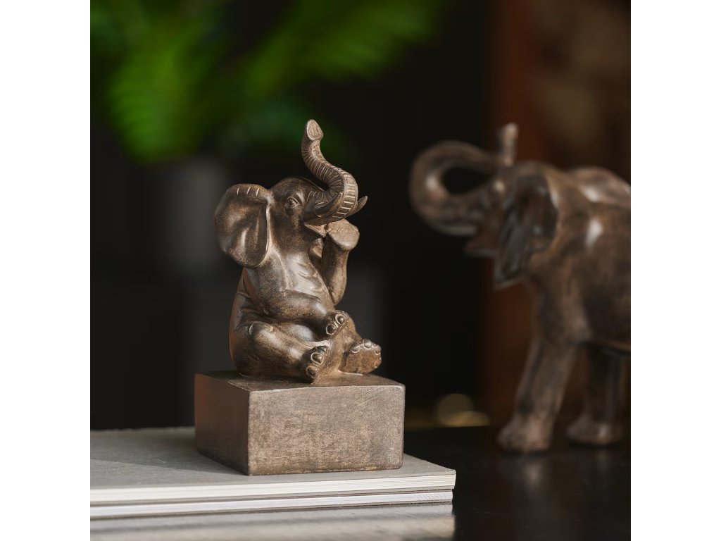 Sloník v hnedej farbe je elegantná dekorácia, ktorá vnesie teplo a exotický akcent do každého interiéru. Vyrobený z odolnej živicovej hmoty, očarí detailným vypracovaním a prirodzeným odtieňom. Ideálny do obývačky, kancelárie alebo ako darček.