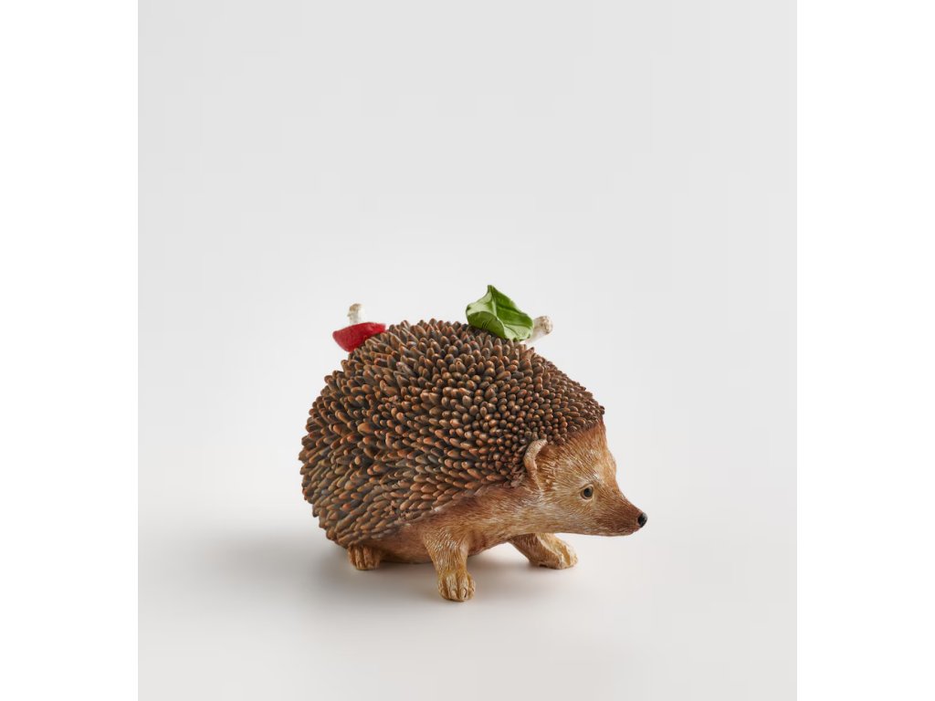 Roztomilá dekoratívna figúrka v tvare ježka, vyrobená z polyresinu v prirodzenej hnedej farbe. Je ideálna ako decentný akcent do interiérov v rustikálnom, škandinávskom alebo prírodnom štýle.