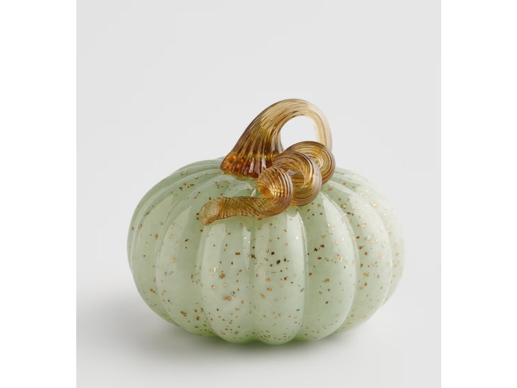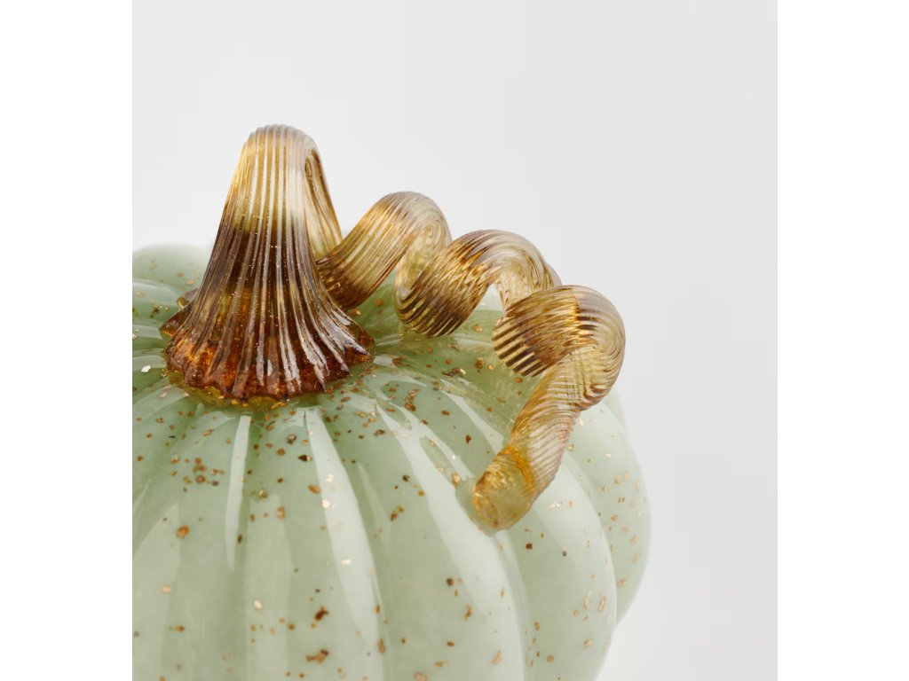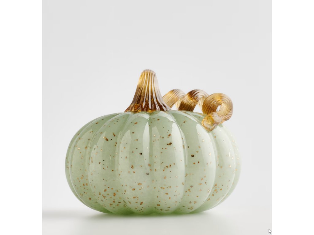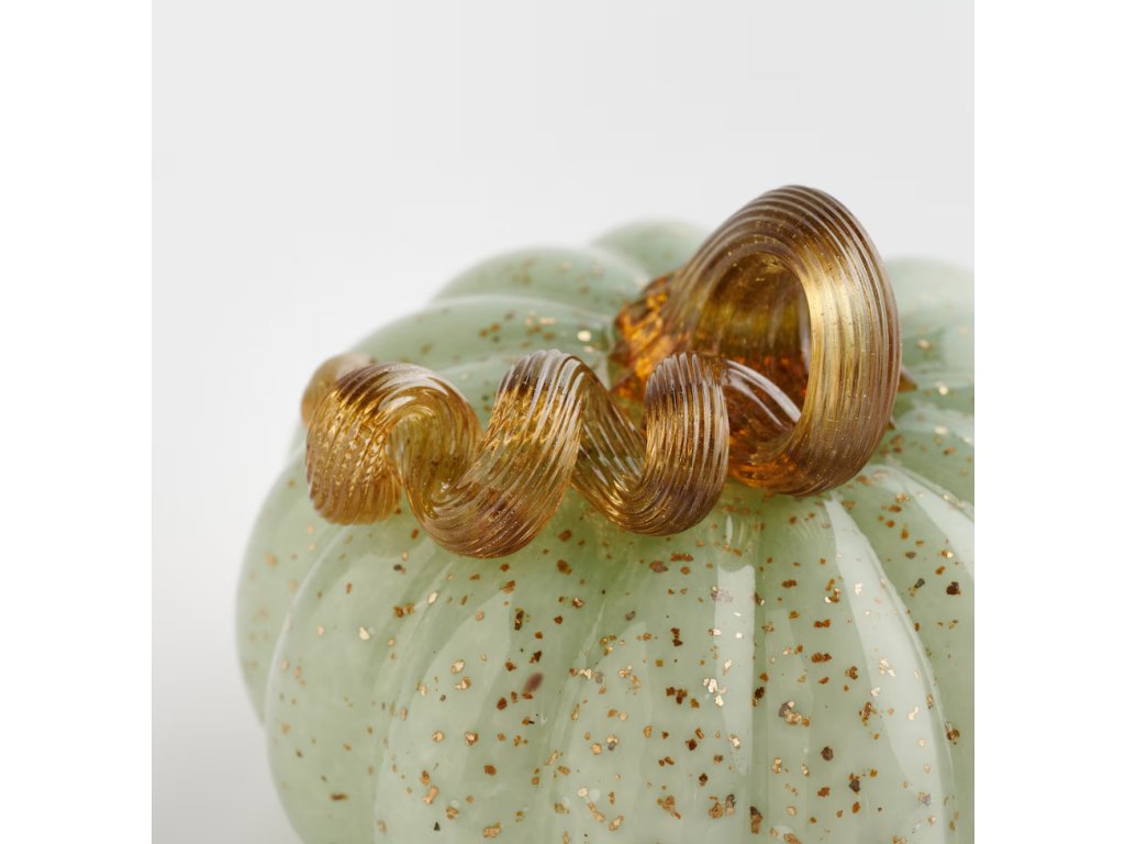 Jemná figúrka tekvice, vyrobená z farebného skla vo sviežej, svetlozelenej farbe, je decentný a elegantný dekoračný akcent. Jej povrch krásne rozptyľuje svetlo a dodáva interiéru jedinečný lesk a prirodzenú sviežosť. Figúrka sa skvele hodí ako dekorácia na poličku, parapet alebo ako súčasť väčších sezónnych kompozícií. Je to vynikajúca voľba pre tých, ktorí oceňujú jedinečné a umelecké doplnky v modernom a ekologickom štýle.