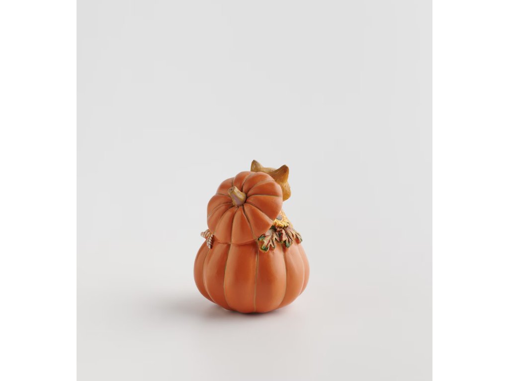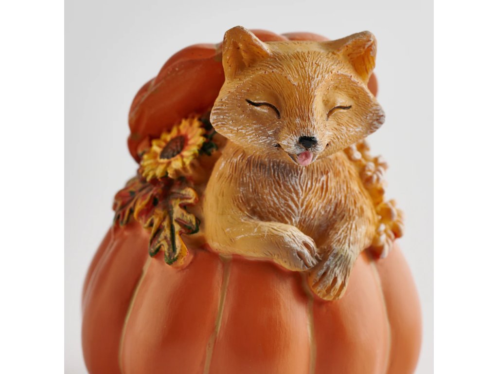 Pôvabná dekoračná figúrka z polyresinu v oranžovej farbe. Jej teplé farby a starostlivo spracované detaily vnesú útulnú, jesennú atmosféru. Figúrka sa skvele hodí ako decentná ozdoba na parapete, poličke alebo stole.