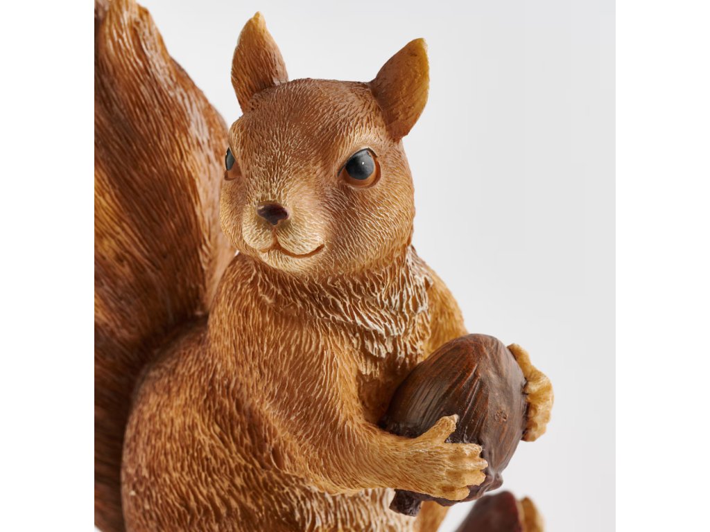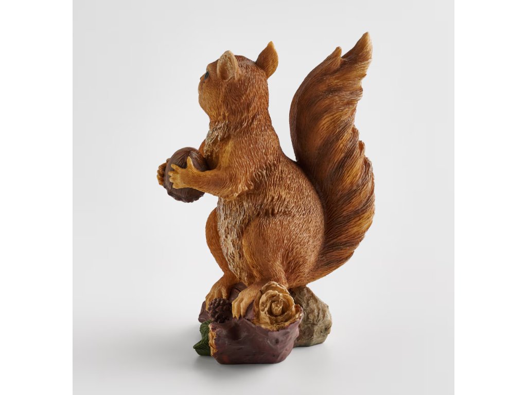 Dekoračná figúrka v tvare veveričky je vyrobená z vysokokvalitného polyresinu. Je vyhotovená v prirodzenej, hnedej farbe a očarí realistickými detailmi a starostlivým spracovaním. Dokonale sa vyníma na poličke, komode, ako aj medzi sezónnymi dekoráciami. Je ideálna do interiérov v rustikálnom, lesnom alebo klasickom štýle a vnesie útulný, prírodný akcent do každej miestnosti.