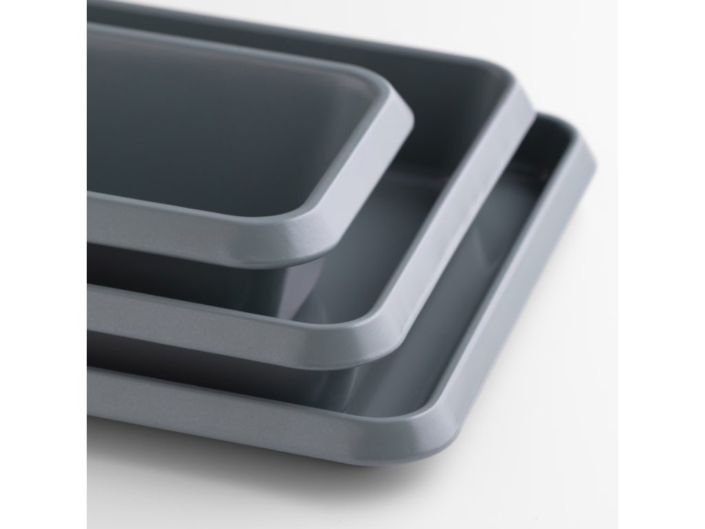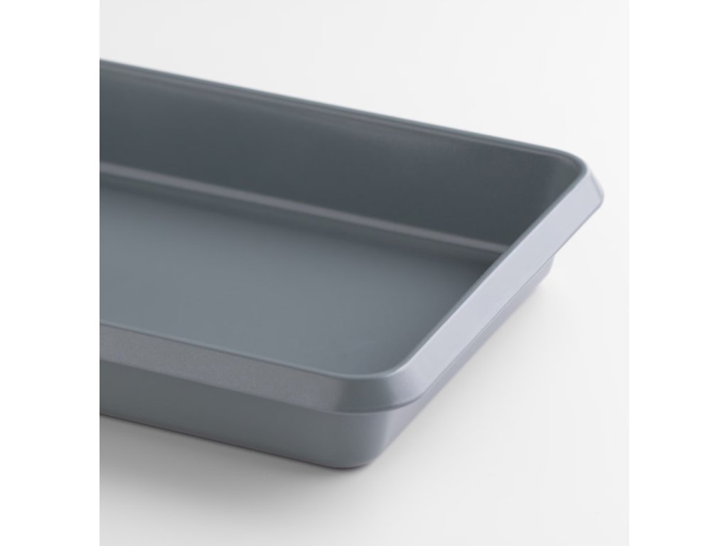 Forma na pečenie je spoľahlivý nástroj na prípravu pečených dobrôt. Je vyrobená z uhlíkovej ocele, je pevná, odolná voči deformáciám a zaisťuje rovnomerné rozloženie tepla počas pečenia. Svetlozelená farba jej dodáva moderný a svieži vzhľad, ktorý ju odlišuje od ostatných kuchynských doplnkov. Nepriľnavý povlak uľahčuje vyberanie upečených výrobkov, ako aj jednoduché čistenie po použití, čo ju robí pohodlnou a praktickou na každodenné používanie.