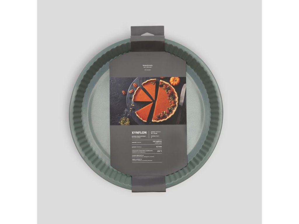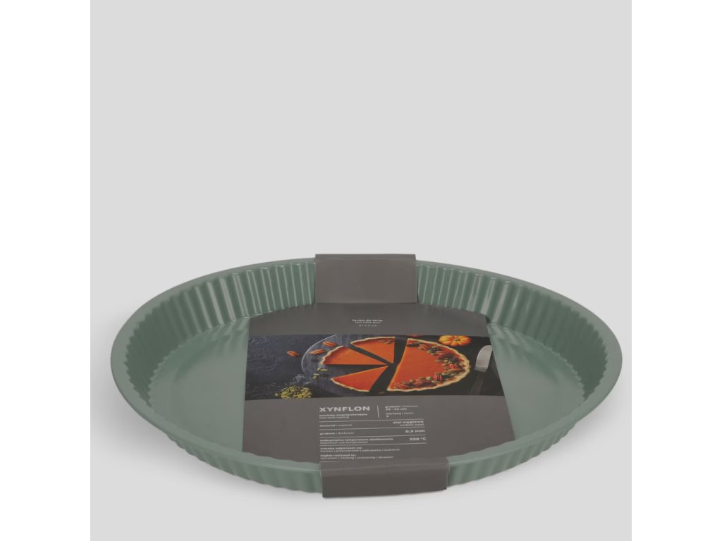 Praktická forma na pečenie z uhlíkovej ocele vo svetlozelenej farbe. Je ideálna na prípravu koláčov, tartaletiek (alebo kysnutých koláčov) či pizze, zabezpečuje rovnomerné rozloženie tepla počas pečenia. Je vynikajúca na každodenné pečenie, ako aj na špeciálne príležitosti.
