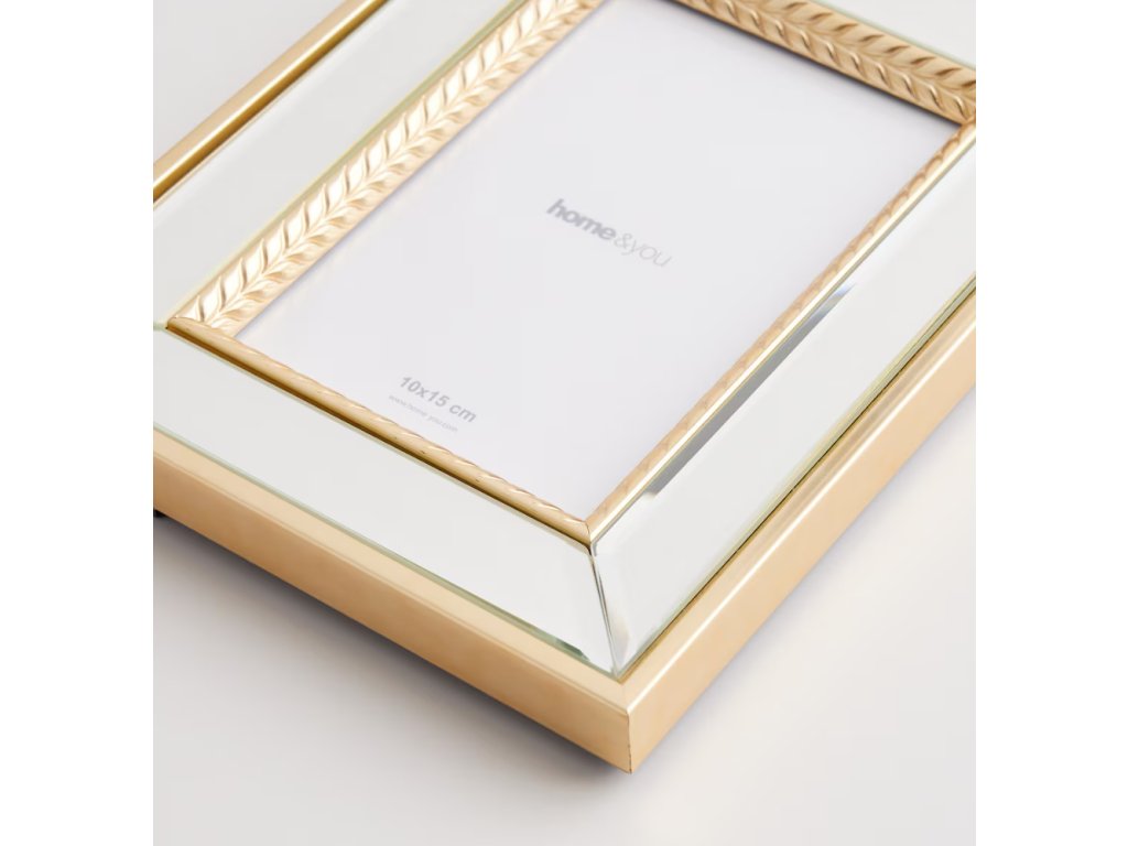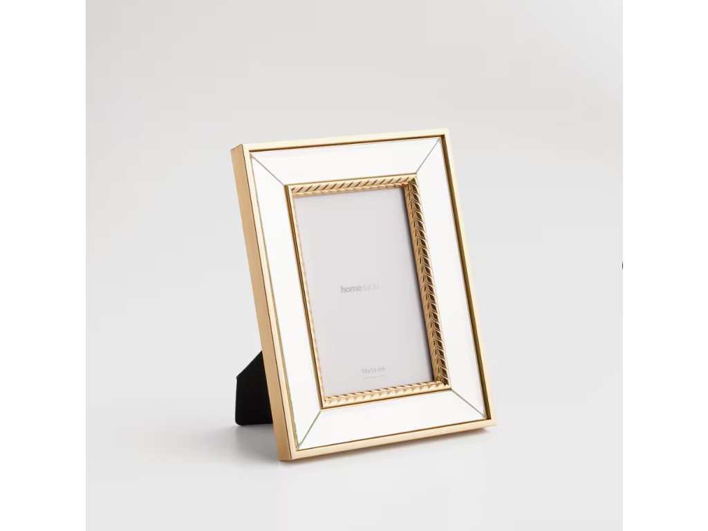 Rámik na fotografiu s rozmermi 10 x 15 cm vyrobený zo skla a plastu v elegantnej, zlatej farbe je dokonalý spôsob, ako vystaviť obľúbené spomienky. Spojenie trvácneho materiálu s priehľadným sklom dodáva rámiku ľahkosť a moderný charakter, pričom zlaté vyhotovenie mu pridáva na triede a štýle. Ideálny na postavenie na písací stôl, poličku alebo zavesenie na stenu, osvedčí sa v každom interiéri, vnášajúc doň teplý a luxusný akcent.