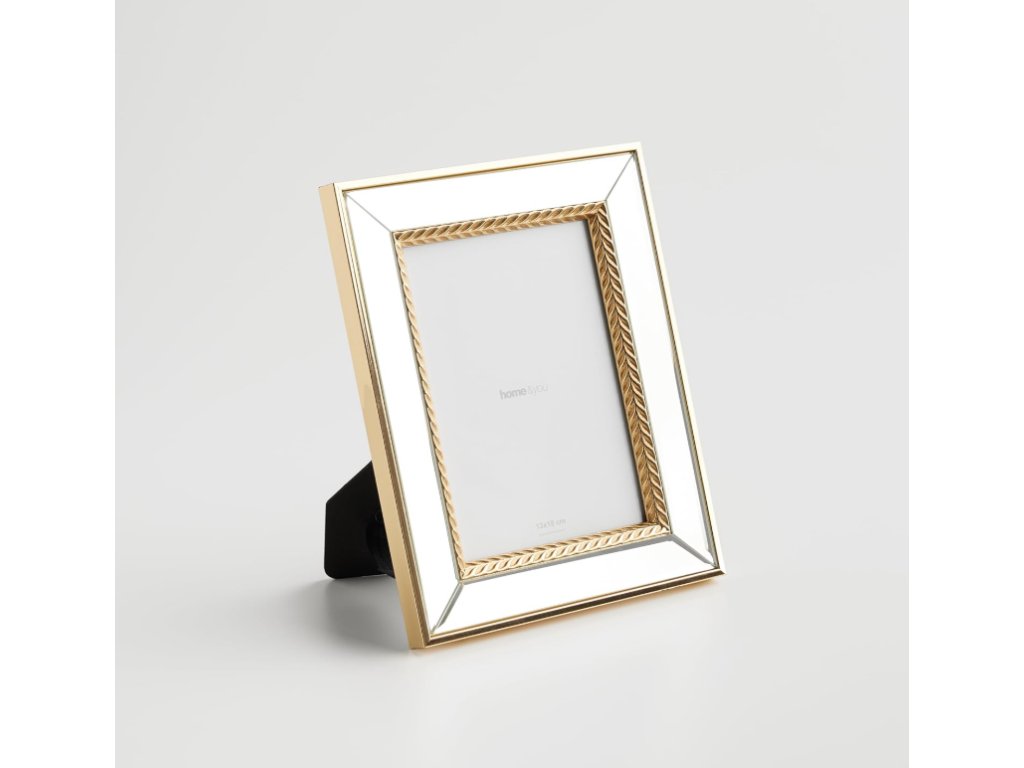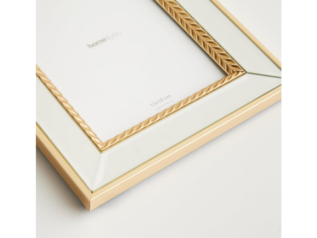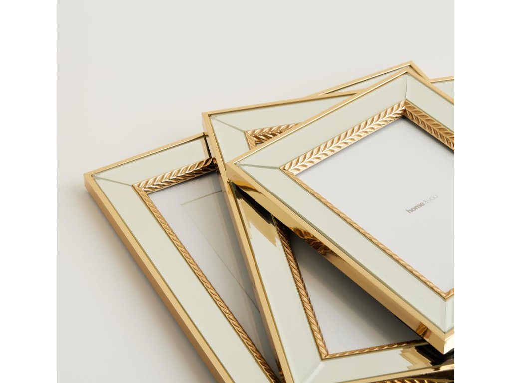 S rozmermi 24,5 cm na výšku, 19,5 cm na dĺžku a šírkou 2 cm ponúka fotorámik priestor pre fotografie vo formáte 13 x 18 cm. Jemný zlatý ornament na skle dodáva rámu špeciálny nádych a podčiarkuje jeho vysokokvalitný charakter.
