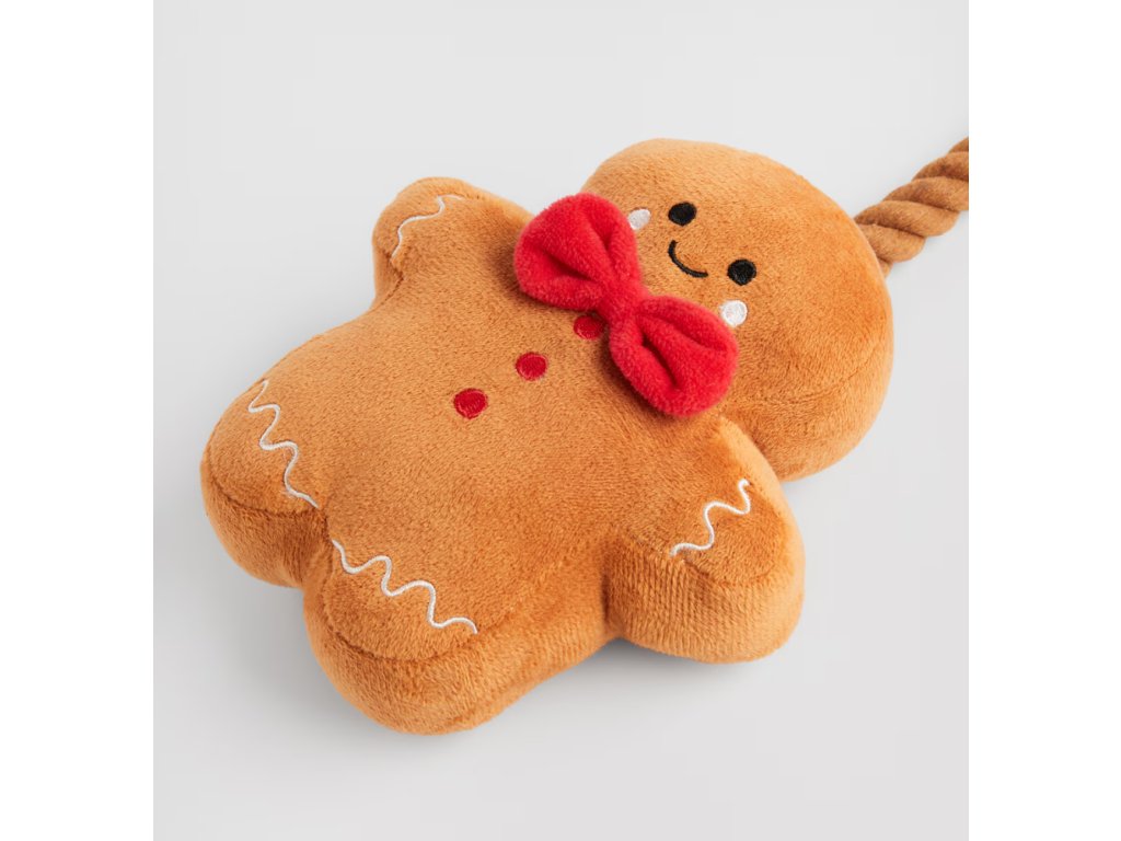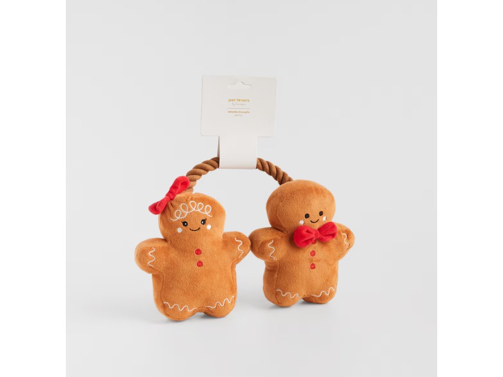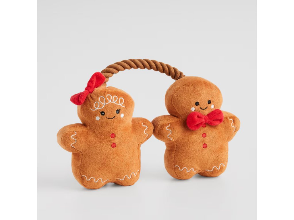 Predstavujeme hračku Ginger – dve plyšové medovníkové figúrky spojené hrubým preťahovacím lanom. Táto kombinácia mäkkého materiálu na maznanie a pevného lana na preťahovanie je dokonalá pre psov všetkých veľkostí. Ručne vyšívané detaily a žiadne tvrdé časti zaručujú bezpečnú a roztomilú zábavu.
