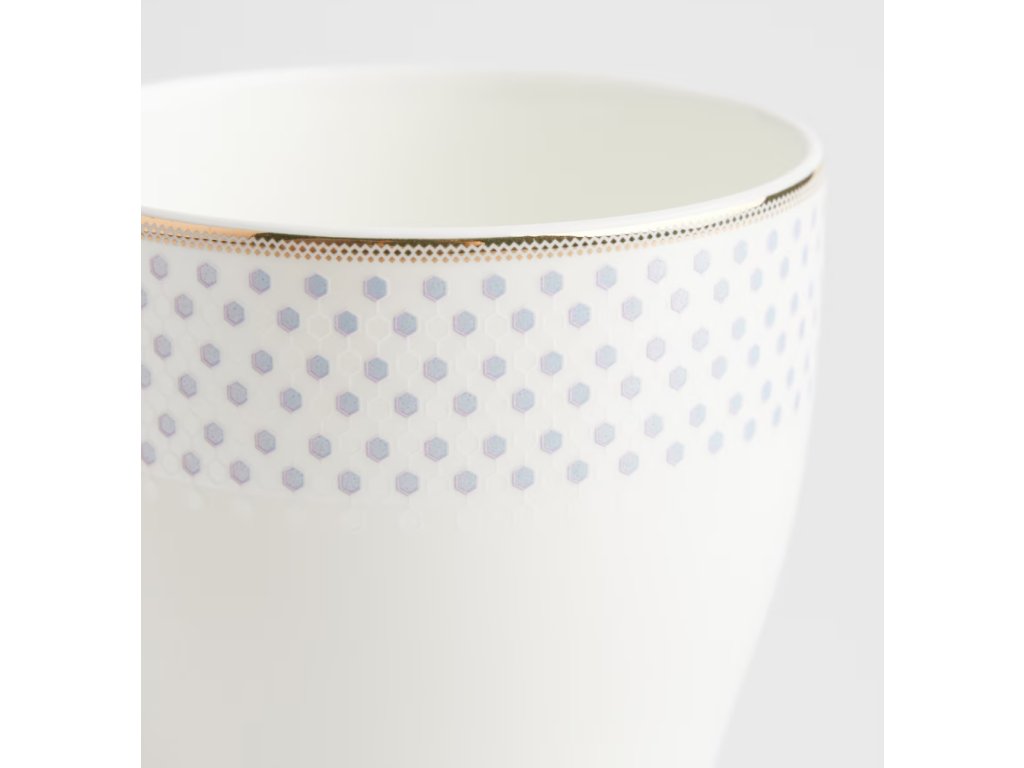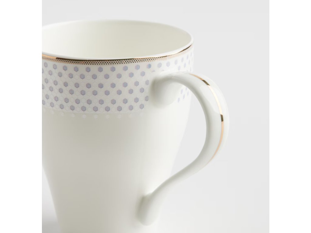 Praktický a štýlový hrnček z porcelánu, zdobený pôvabným vzorom modrých bodiek na bielom pozadí. Objem 400 ml ho robí ideálnym na podávanie obľúbených nápojov, ako je káva, čaj alebo kakao. Klasický dizajn s decentným zdobením sa dokonale hodí na každodenné použitie a dodá šarm každej kuchyni či jedálni. Hrnček je odolný a ľahko sa udržiava.