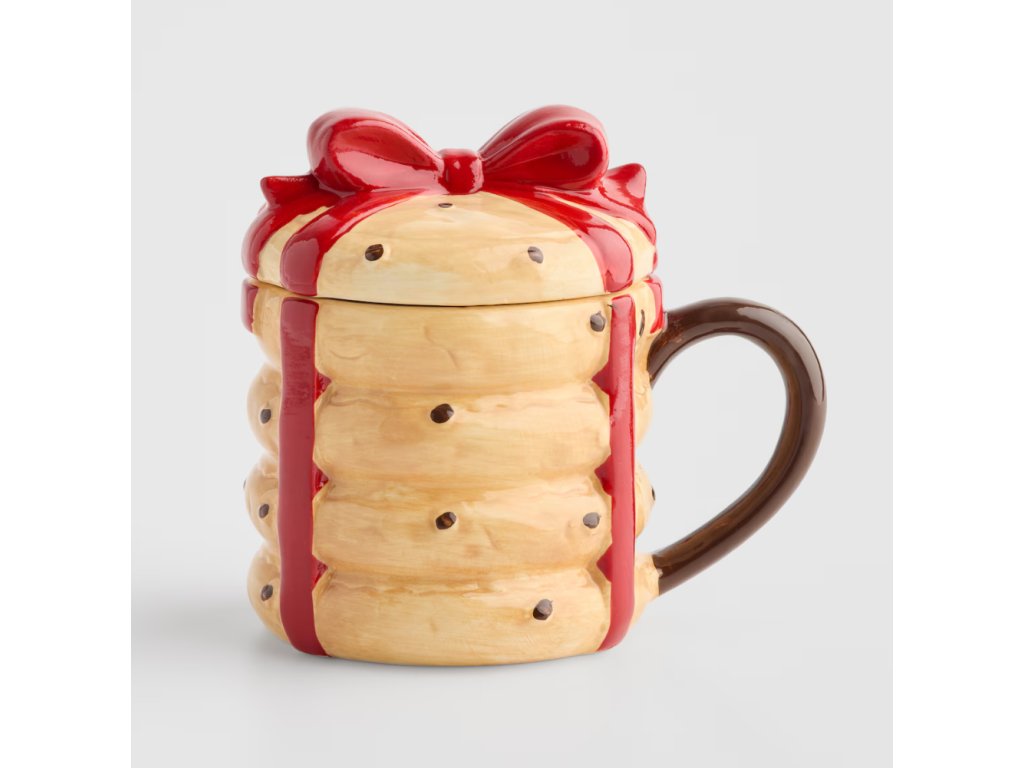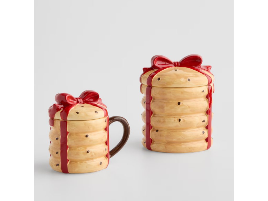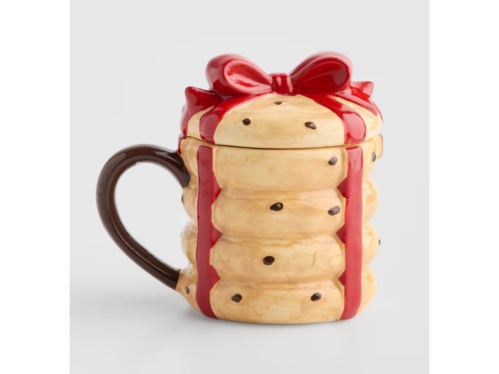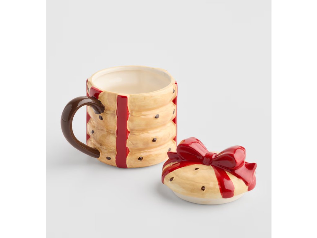 Vychutnajte si svoju kávu alebo čaj s týmto hravým, sviatočným hrnčekom! Hrnček s doplnkami Cookie je vyrobený z ručne dekorovaného dolomitu a jeho dizajn verne imituje stoh maslových sušienok, ktoré sú previazané lesklou červenou stuhou s mašľou. Mašľa slúži ako pokrievka, ktorá udrží váš nápoj dlhšie teplý, prípadne ho môžete použiť na servírovanie malej sušienky. S objemom 400 ml je ideálny na zimné horúce nápoje. Jeho viacfarebné vyhotovenie a kulinársky motív z neho robia skvelý vianočný darček alebo veselý doplnok do každej kuchyne.