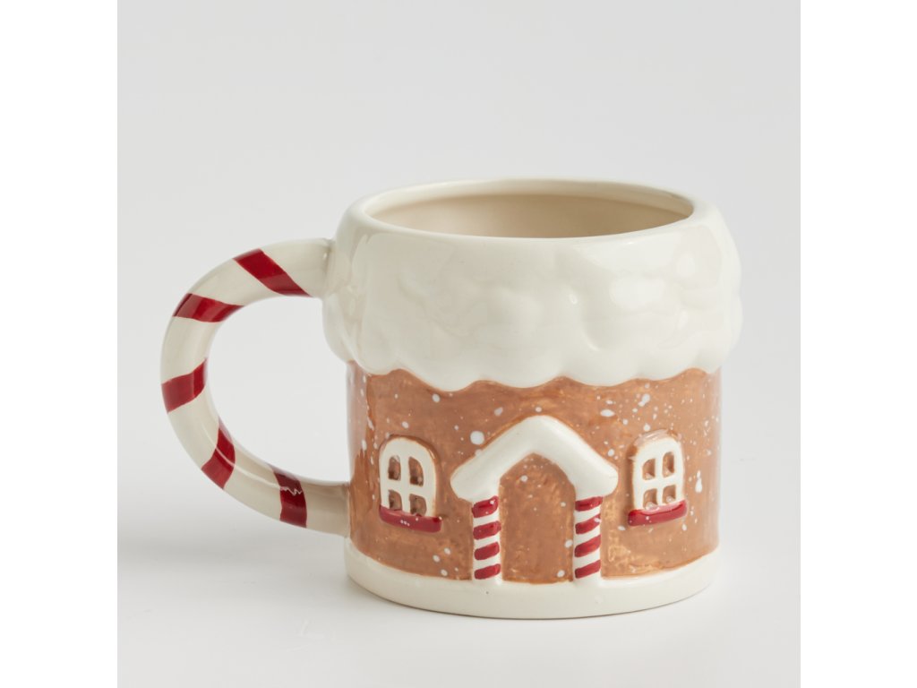 Tento keramický hrnček s originálnym sviatočným motívom perníkovej chalúpky okamžite vnesie do vášho domova vianočnú atmosféru. Dizajn napodobňuje sladkú chalúpku bohato zasypanú snehom, s hnedou textúrou perníka a malými bielymi a červenými detailmi. Neodolateľná rúčka v tvare červeno-bielej cukrovej paličky dodáva celému kúsku hravý a veselý akcent. Je to ideálny kúsok na servírovanie horúcej čokolády, kakaa alebo obľúbeného čaju počas chladných zimných večerov, čím sa stáva nielen nádobou, ale aj štýlovou sezónnou dekoráciou.