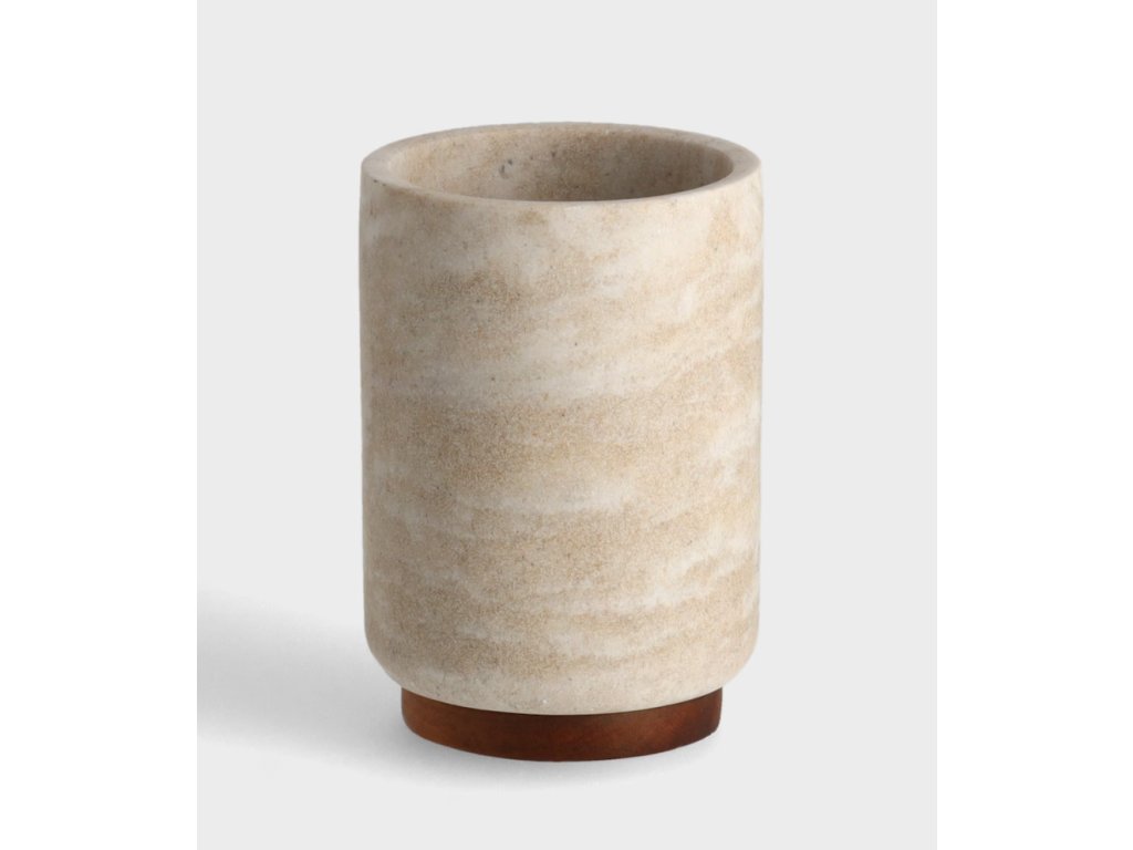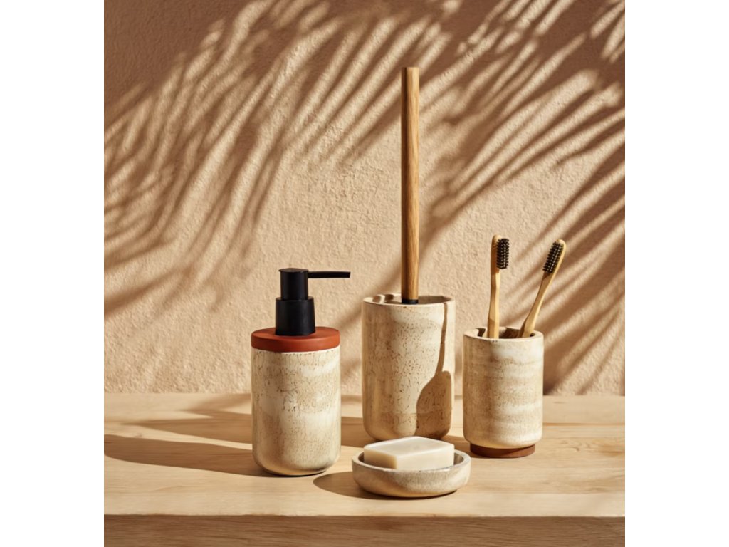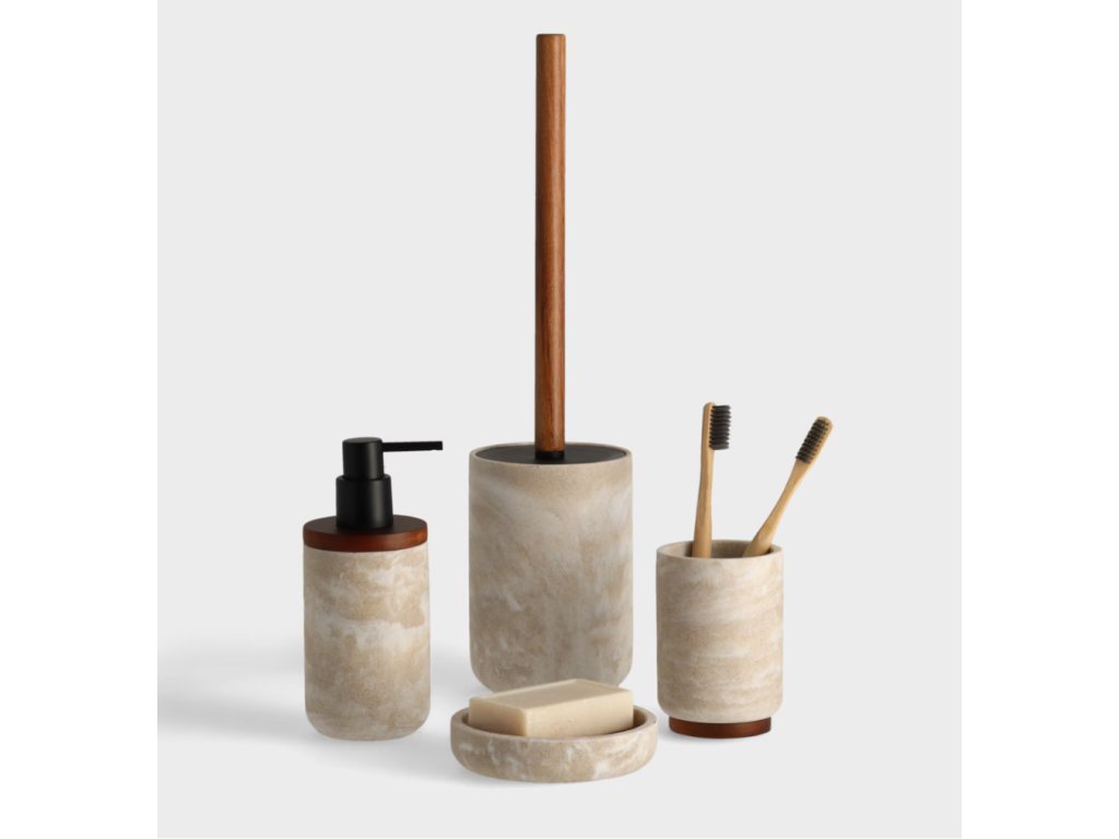 Kúpeľňový hrnček Arkano je mimoriadne elegantný a štýlový doplnok do každej kúpeľne. V béžovom odtieni sa dokonale hodí k rôznym interiérovým aranžmánom, ktorým dodá noblesu a sofistikovanosť. Je vyrobený z vysokokvalitnej živicovej hmoty, ktorá zaručuje dlhú životnosť a jednoduchú údržbu. Dodatočným prvkom, ktorý zdobí tento hrnček, je akáciové drevo, ktoré mu dodáva jedinečný charakter a prirodzený pôvab. Hrnček Arkano v kúpeľni nielen skvele vyzerá, ale je aj veľmi funkčný. Môžete v ňom uskladniť zubné kefky, zubnú pastu, hrebene či iné drobné predmety, ktoré chcete mať vždy poruke. Vďaka pevnému spracovaniu a vysokokvalitným materiálom vám bude tento hrnček slúžiť dlhé roky a zachová si svoj pôvodný estetický vzhľad. Vneste do svojej kúpeľne nádych luxusu a prestíže s hrnčekom Arkano – nenahraditeľným doplnkom, ktorý pozdvihne vizuálnu úroveň tohto priestoru a spríjemní vaše každodenné kozmetické rituály.