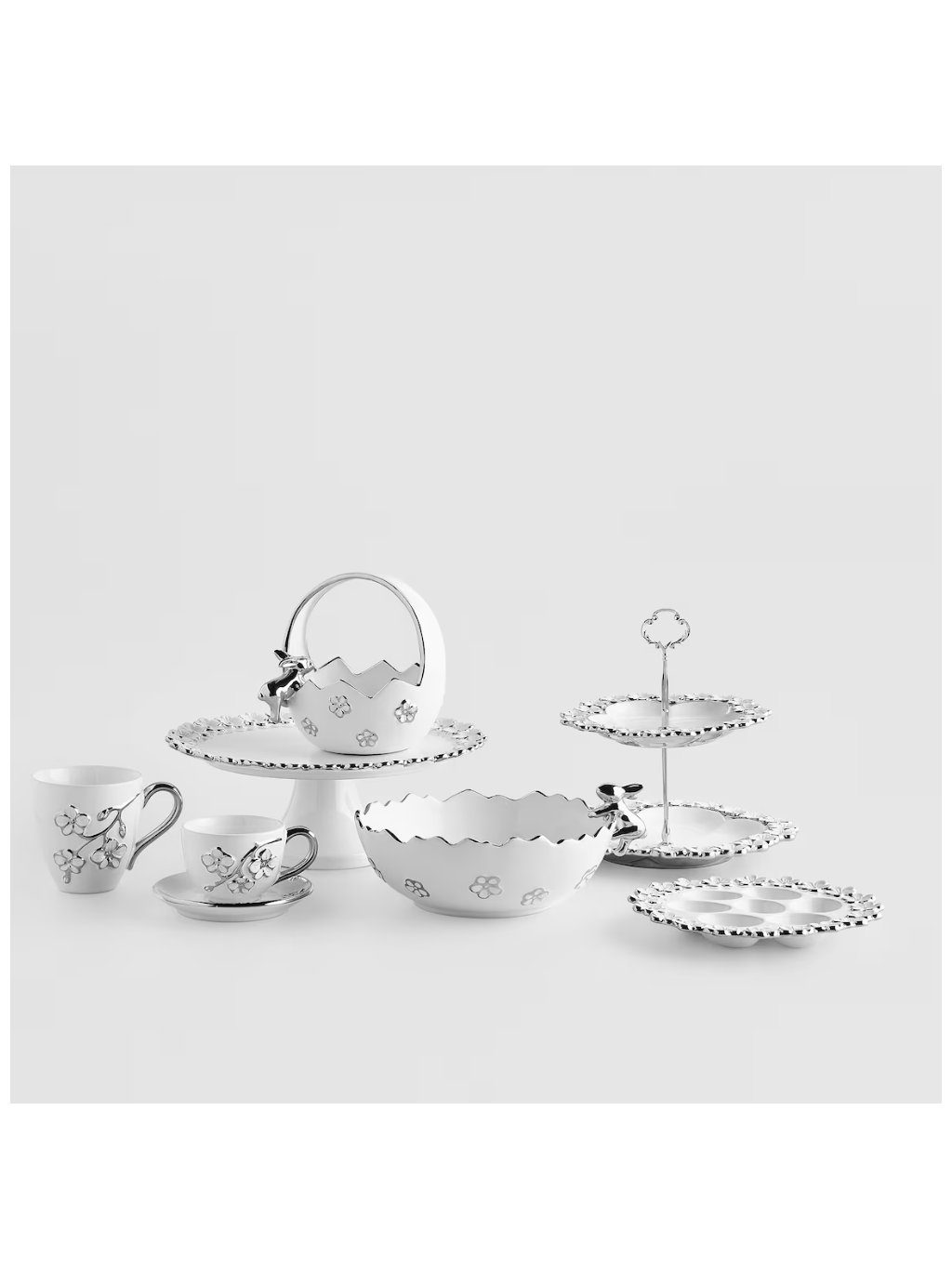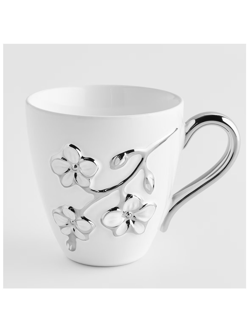 Vzhľad: Strieborná potlač s jemným kvetinovým motívom dodáva hrnčeku neopakovateľný glamour charakter.